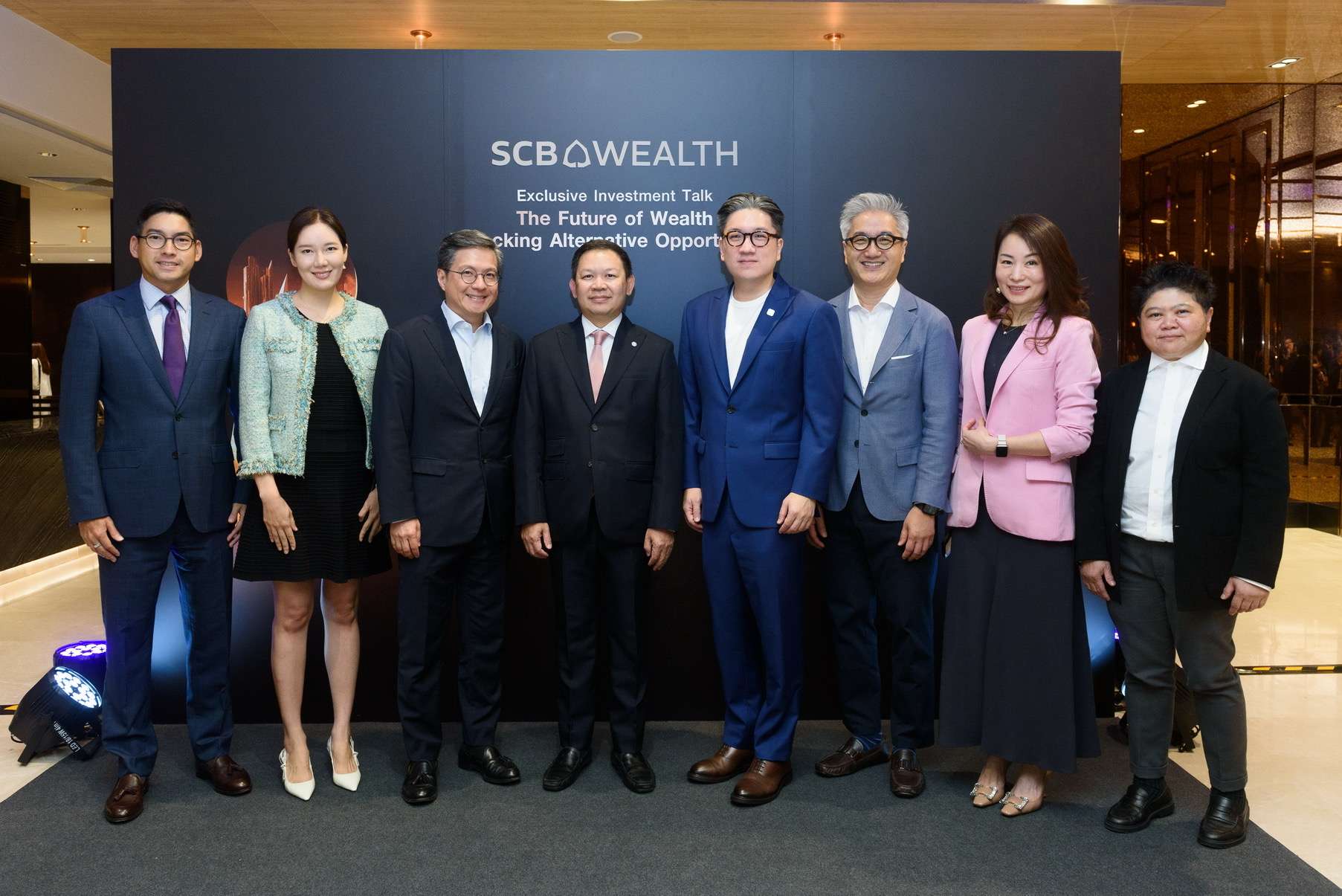 SCB WEALTH จัดสัมมนาภายใต้แนวคิด The Future of Wealth : Unlocking Alternative Opportunities ให้กับกลุ่มลูกค้าเวลธ์ เพื่อถ่ายทอดมุมมองและเจาะลึกโอกาสการลงทุนในสินทรัพย์ทางเลือกใน Private Asset ,Private Equity และ Hedge Fund ล้วนเป็นเครื่องมือสำคัญในการสร้างผลตอบแทนที่โดดเด่นท่ามกลางสภาวะเศรษฐกิจโลกที่ยังเผชิญความผันผวนจากปัจจัยหลากหลาย โดยได้รับเกียรติจากผู้เชี่ยวชาญกองทุนระดับโลกมาร่วมบรรยาย ได้แก่ นางสาวซันนี่ ยุน (ที่2ซ้าย) หัวหน้าฝ่ายไพรเวท เวลธ์ ประจำภูมิภาคเอเชียตะวันออกเฉียงใต้และเกาหลี บริษัท Partners Group สิงคโปร์ ,นายเอ็ดวิน ชาน (ที่ 3 ซ้าย) กรรมการผู้จัดการ หัวหน้าฝ่ายโซลูชั่นสำหรับลูกค้า ประจำภูมิภาคเอเชียแปซิฟิก บริษัท iCapital ,นายยอด ชินสุภัคกุล (ที่ 5 ซ้าย) ประธานเจ้าหน้าที่บริหาร LINE MAN Wongnai ,นายหลิง กว๊อก (ที่ 6 ซ้าย) หุ้นส่วนและประธานเจ้าหน้าที่การลงทุน (CIO) บริษัท Quantum GBL Asset Management และนางสาวซาแมนธาหลิน (ที่ 7 ซ้าย),CFA , ผู้อำนวยการฝ่ายการลงทุนทางเลือก บริษัท Franklin Templeton Core Asia โดยมีนายศรชัย สุเนต์ตา (ที่ 4 ซ้าย),CFA รองผู้จัดการใหญ่ ผู้บริหารสายงาน Wealth & Investment Product กลุ่มธุรกิจ Consumer Banking ธนาคารไทยพาณิชย์, นายแพททริก ปูเลีย (ที่ 1 ซ้าย) รองผู้จัดการใหญ่ ผู้บริหารสายงานตลาดการเงิน และ Head of Private Banking Relationship Management ธนาคารไทยพาณิชย์ และนางสาวศลิษา หาญพานิช (ที่ 8 ซ้าย) ผู้ช่วยผู้จัดการใหญ่ High Net Worth and Affluent Segment และรักษาการผู้ช่วยผู้จัดการใหญ่ Wealth and Insurance Capability Development ธนาคารไทยพาณิชย์ ให้การต้อนรับ เมื่อเร็วๆนี้ ณ โรงแรม ไฮแอท รีเจนซี่ กรุงเทพฯ