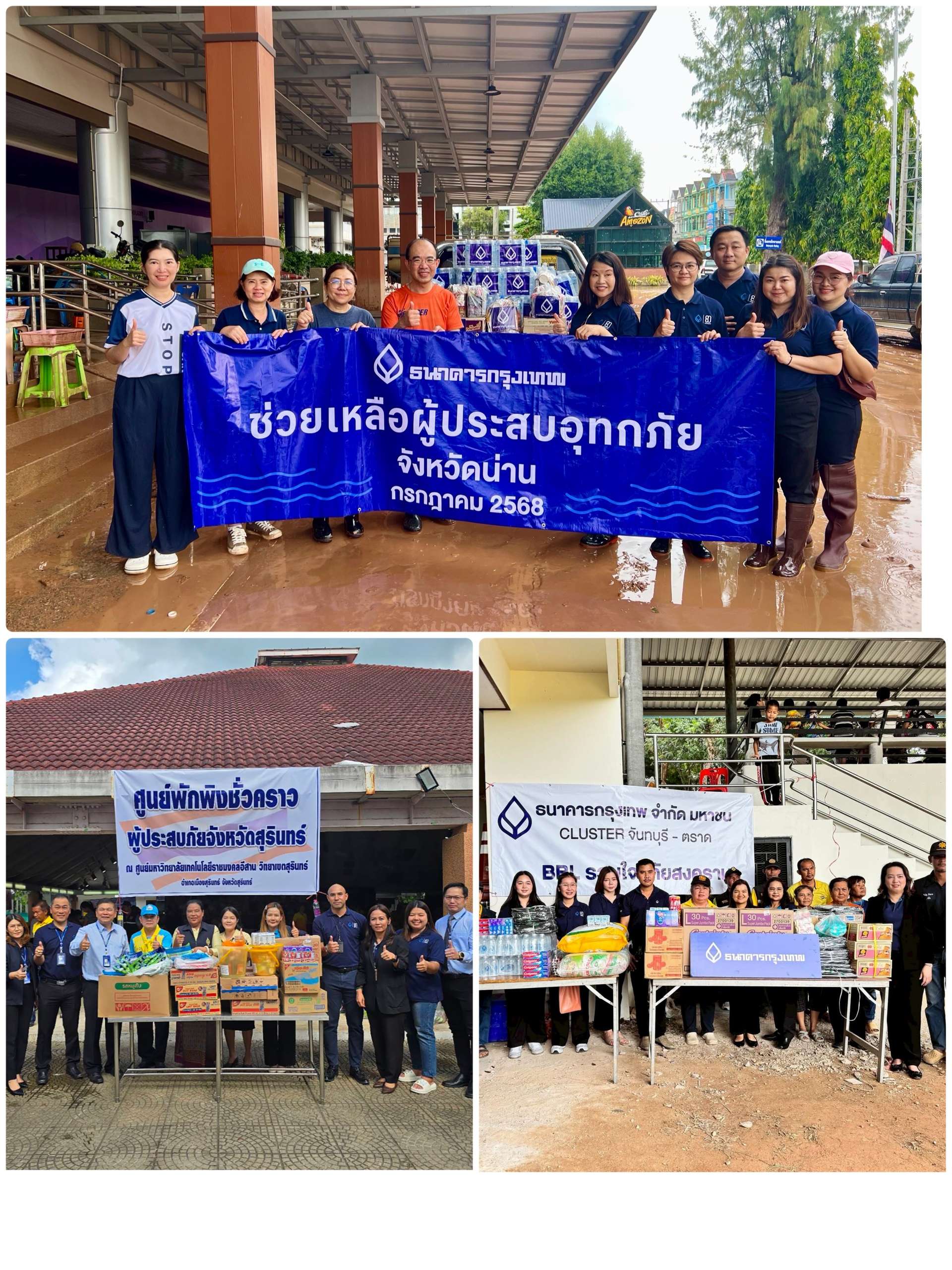ธนาคารกรุงเทพ จำกัด (มหาชน) โดยนางสมศรี ทรายคำ ผู้จัดการภาคเหนือ 2 และผู้จัดการสาขาในพื้นที่ภาคเหนือ 2 เป็นผู้แทนส่งกำลังใจและความห่วงใย พร้อมมอบน้ำดื่ม และถุงยังชีพบรรจุสิ่งของจำเป็น ให้กับหน่วยงานปกครองส่วนท้องถิ่นและประชาชนในพื้นที่ เพื่อบรรเทาความเดือดร้อนแก่พี่น้องชาวภาคเหนือ ที่ได้รับผลกระทบจากเหตุการณ์น้ำท่วมที่กำลังเกิดขึ้น นอกจากนี้ผู้จัดการสาขาในพื้นที่ภาคตะวันออกเฉียงเหนือ 1 และภาคกลาง 1 ยังได้เป็นผู้แทนร่วมส่งมอบความห่วงใย โดยรวบรวมสิ่งของบริจาค ของใช้จำเป็น อาทิ น้ำดื่ม อาหารแห้ง และของใช้ส่วนตัว เพื่อส่งต่อให้กับผู้ได้รับผลกระทบจากสถานการณ์ความไม่สงบชายแดนไทย-กัมพูชา ผ่านศูนย์อพยพในจุดต่างๆ พร้อมยืนหยัดเป็น “เพื่อนคู่คิด มิตรคู่บ้าน” เคียงข้างคนไทยในทุกสถานการณ์
