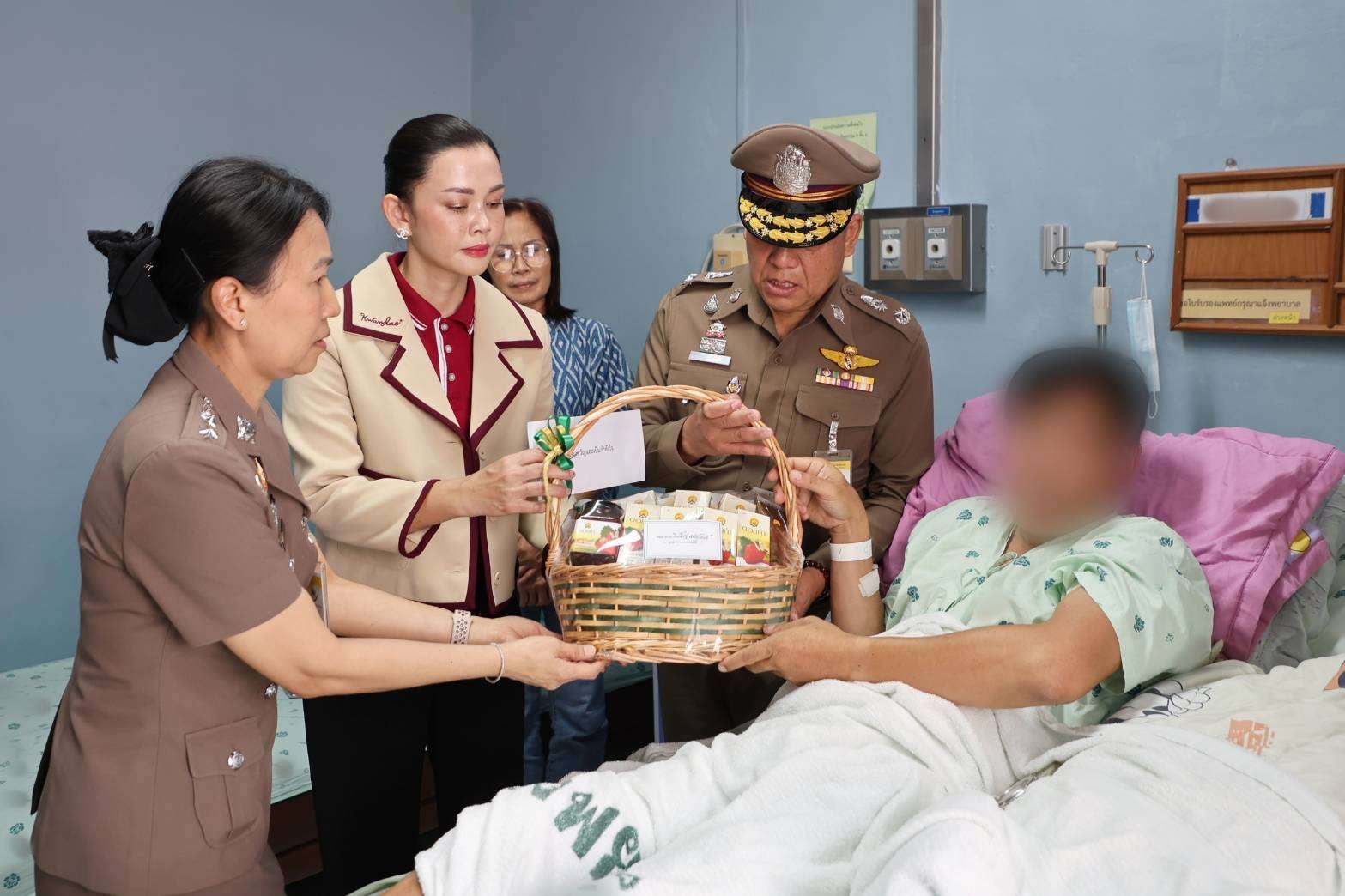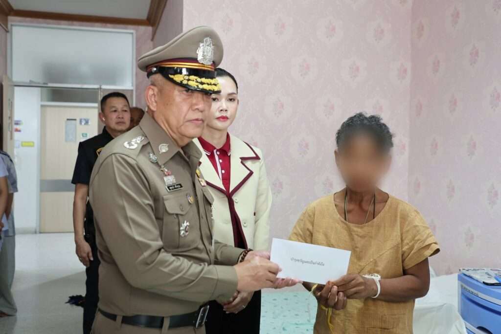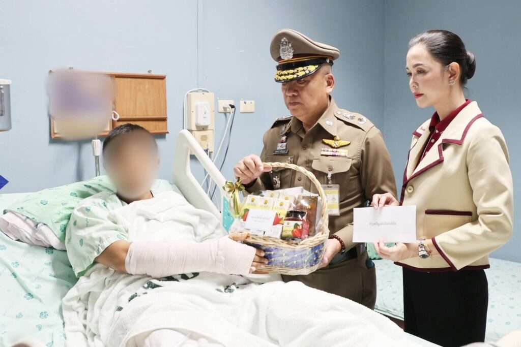 วันที่. 3 ส.ค.68 ที่ ภ.จว.สุรินทร์ พล.ต.อ.กิตติ์รัฐ พันธุ์เพ็ชร์ ผบ.ตร. มอบหมาย พล.ต.ต.สุคนธ์ ศรีอรุณ ผบก.ภ.จว.สุรินทร์ และ คุณอมรรัตน์ ผลประเสริฐ ประธานชมรมแม่บ้านตำรวจภูธรจังหวัดสุรินทร์ เข้าเยี่ยมทหารและประชาชนที่บาดเจ็บจากเหตุปะทะตามแนวชายแดน พร้อมมอบเงินช่วยเหลือและให้กำลังใจ โรงพยาบาล
