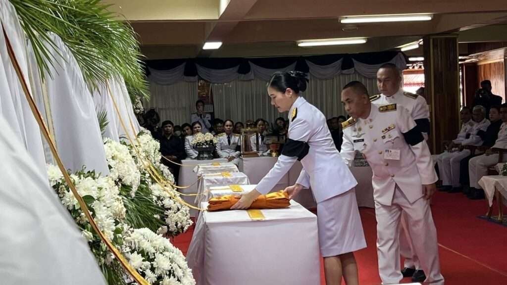 กรุงเทพฯ, วันที่ 4 สิงหาคม – นางสาวจิราพร สินธุไพร รัฐมนตรีประจำสำนักนายกรัฐมนตรี เปิดเผยว่า พระบาทสมเด็จพระเจ้าอยู่หัว ทรงพระกรุณาโปรดเกล้า ฯ พระราชทานเพลิงศพ เป็นกรณีพิเศษ แก่ทหารและพลเรือนประชาชนที่เสียชีวิตจากสถานการณ์ความไม่สงบในพื้นที่จังหวัดชายแดนไทย-กัมพูชา โดยรัฐบาลได้มอบหมายรัฐมนตรีเข้าร่วมพิธีพระราชทานเพลิงศพของทหาร-พลเรือน ดังนี้