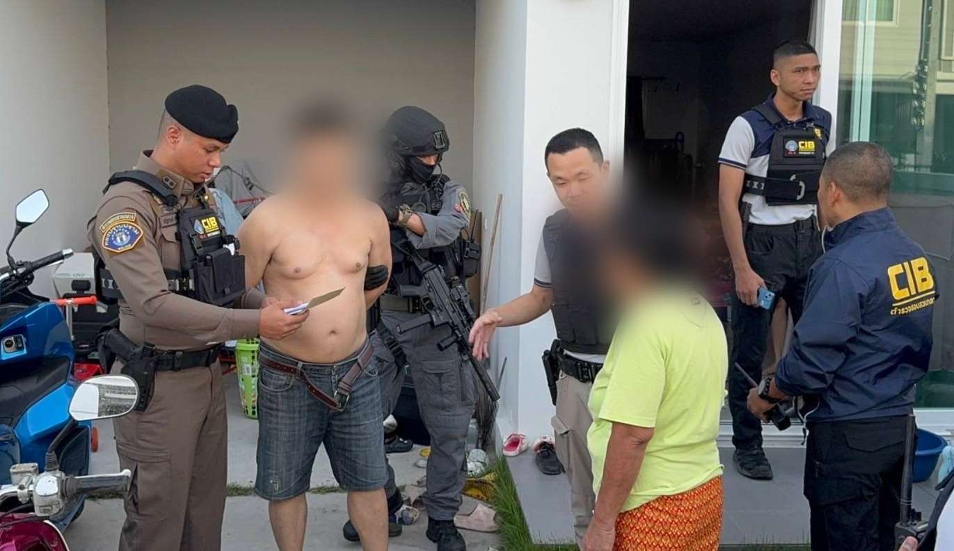 ของบ้าน โดยเจ้าหน้าที่ตำรวจชุดจับกุมได้ร่วมกันจับกุมตัวเอาไว้ได้หลังการตรวจค้นเสร็จสิ้น