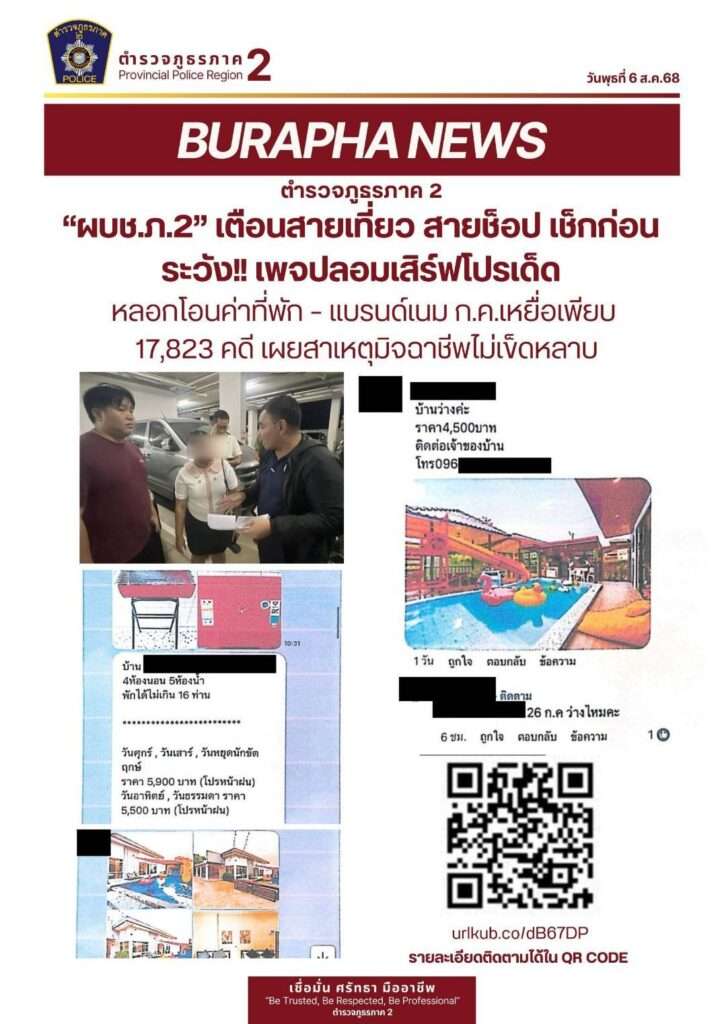 เมื่อวันที่ 6 สิงหาคม 2568 พล.ต.ท.ยิ่งยศ เทพจำนงค์ ผู้บัญชาการตำรวจภูธรภาค 2 (ผบช.ภ.2) เปิดเผยว่า จากกรณีที่ตำรวจกองบังคับการสืบสวนสอบสวนตำรวจภูธรภาค 2 หรือ “สืบภาค 2” ร่วมกับตำรวจสืบภาค 1 จับกุม นางสาวอิ๋ว ซึ่งมีพฤติการณ์โพสต์เฟซบุ๊กหลอกลวง สร้างเพจปลอมขายห้องพัก พูลวิลล่า หลอกให้เหยื่อโอนเงินเข้าบัญชีม้า และตรวจสอบพบเกี่ยวโยงกับคดีที่มีผู้เสียหายแจ้งความผ่านระบบรับแจ้งความออนไลน์ ของสำนักงานตำรวจแห่งชาติ หรือ www.thaipoliceonline.go.th มากถึง 20 คดี และจากการตรวจสอบฐานข้อมูลการรับแจ้งความ และการสืบสวนสอบสวนคดีออนไลน์พบว่า คดีหลอกลวงขายสินค้าและบริการออนไลน์ลักษณะนี้เกิดขึ้นจำนวนมาก สูงสุดเป็นอันดับ 1 ของคดีออนไลน์ พวกนี้คือมิจฉาชีพคนไทยที่หลอกคนไทยด้วยกันเอง เป็นคดีที่ความเสียหายไม่มาก คนร้ายมักไม่เข็ดหลาบ เพราะผู้เสียหาย ไม่ค่อยแจ้งความ หากคดีไหนที่ตำรวจติดตามจับกุมได้ก็จะขอยอมความ ชำระเงินคืนแบบผ่อน คดีแบบนี้เกิดขึ้นซ้ำ ๆ จึงต้องเตือนภัยประชาชนอย่าหลงเชื่อ