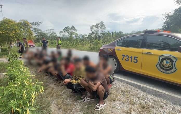จากการตรวจสอบรถคันดังกล่าว พบว่าภายในรถมีบุคคลต่างด้าว สัญชาติเมียนมา จำนวน 24 คน เป็นชาย จำนวน 22 คน หญิง จำนวน 2 คน นั่งอัดกันอยู่ภายในรถสภาพอิดโรย ส่วนตัวรถด้านหน้าได้รับความเสียหายและกระจังรถด้านหลังหลุดออกจากการไหลไปพุ่งชนต้นไม้ จากนั้นจึงได้ควบคุมตัวมาทำบันทึกส่ง​สภ.ตะโหมด จ.พัทลุง ดำเนินคดีตามกฎหมาย