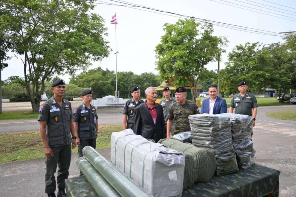 พร้อมอาหารแห้ง ให้ตำรวจตระเวนชายแดนที่ปฏิบัติหน้าที่ในภารกิจชายแดนไทย – กัมพูชา พร้อมให้กำลังใจและให้ข้อแนะนำในการปฏิบัติหน้าที่