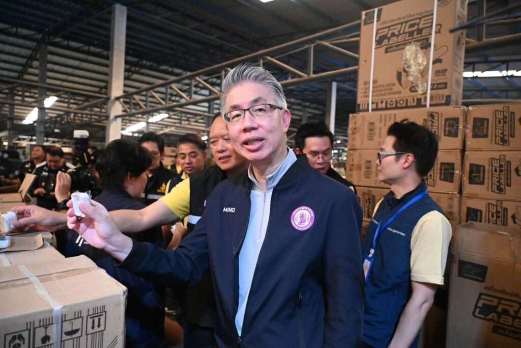 กรุงเทพฯ, วันที่ 7 ส.ค. – นายเอกนัฏ พร้อมพันธุ์ รมว.อุตสาหกรรม พร้อมด้วย นายณัฐพล รังสิตพล ปลัดกระทรวงอุตสาหกรรม ร่วมกับ พ.ต.ต.วรณัน ศรีล้ำ ผู้อำนวยการกองคดีคุ้มครองผู้บริโภค กรมสอบสวนคดีพิเศษ (DSI) เข้าตรวจสอบโกดังสินค้าของ บริษัท ดีเอส ทูลส์ จำกัด ตั้งอยู่เลขที่ 6 ซอยเทียนทะเล 25 แขวงท่าข้าม เขตบางขุนเทียน กรุงเทพมหานคร ซึ่งเป็นผู้ได้รับใบอนุญาตนำเข้าก๊อกน้ำสำหรับเครื่องสุขภัณฑ์ ฝักบัวอาบน้ำ ภาชนะและเครื่องใช้เมลามีน และภาชนะและเครื่องใช้พลาสติกสำหรับอาหาร
