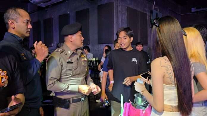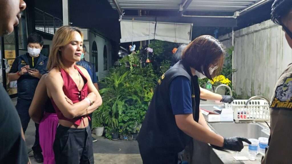 เจ้าหน้าที่ได้ทำการสุ่มตรวจค้นผู้ใช้บริการทั้งชายและหญิง ตรวจปัสสาวะหาสารเสพติด และตรวจค้นหาอาวุธปืน จากการตรวจสอบภายในร้าน พบยาเสพติดประเภทเคตามีน จำนวน 7 ห่อ ซุกซ่อนอยู่ในถังน้ำแข็งและถูกทิ้งไว้บนพื้นร้าน พร้อมอุปกรณ์การเสพหลายรายการ เจ้าหน้าที่จึงเก็บไว้เป็นของกลาง ก่อนดำเนินการตรวจปัสสาวะผู้เข้าใช้บริการ พบปัสสาวะสีม่วง รวม 16 ราย แบ่งเป็นชาย 12 ราย และหญิง 4 ราย