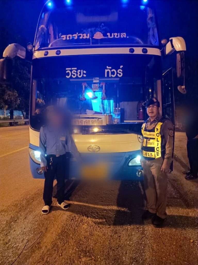 เบื้องต้นพบคนขับคือนายเจริญฯ อายุ 44 ปี ตรวจสอบในรถบริเวณพื้นที่พักพนักงานประจำรถชั้นล่างและที่นั่งเก้าอี้ผู้โดยสารพบบุคคลต่างด้าวสัญชาติเมียนมา 11 คน และคนจีนอีก 5 คน รวมทั้งหมด 16 คน ส่วนใหญ่ไม่มีเอกสารประจำตัวหรือหนังสือเดินทางมาแสดงให้เจ้าหน้าที่ตรวจสอบได้ มีเพียง 5 คน ที่มีหนังสือเดินทางแต่การอนุญาตให้อยู่ในราชอาณาจักรสิ้นสุด