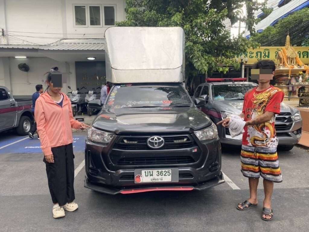จากการตรวจค้น พบผู้ต้องหาคือ นายสรชน หรือ “แต้ม” นาคศรี อายุ 27 ปี เป็นคนขับ และนางสาวเจนจิรา หรือ “เจน” พรมทอง อายุ 30 ปี ภรรยา นั่งโดยสาร ด้านหลังภายในตู้ทึบมีรถจักรยานยนต์ 5 คัน ได้แก่ Honda Click สีเทา-ดำ ทะเบียน 8ขฬ 780 กทม. (แจ้งหาย สน.บางรัก) Honda Click สีเทา-ดำ ทะเบียน 9ขร 8716 กทม. (แจ้งหาย สน.ยานนาวา) Honda Click สีเทา-ดำ ทะเบียน 8ขล 2467 กทม. (แจ้งหาย สน.สุทธิสาร) Honda ADV สีเทา-ดำ ทะเบียน 9ขย 7373 กทม. (อยู่ระหว่างตรวจสอบ) และ Honda Click สีเทา-ดำ ไม่ติดป้ายทะเบียน (อยู่ระหว่างตรวจสอบ)