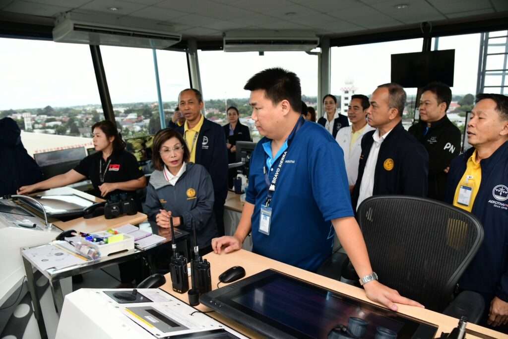 นอกจากนี้  นางมนพร ยังได้ติดตามการทำงานของ เจ้าหน้าที่หอบังคับการบิน บริษัทวิทยุการบิน แห่งประเทศไทย  เน้นการดูแลความปลอดภัยการจราจรทางอากาศ รวมถึงเพิ่มมาตรการเข้มในการตรวจสอบ การบินโดรนที่ไม่ได้รับอนุญาต และออกมาตรการควบคุมการบินโดรนทุกกรณี หากไม่ได้รับอนุญาต ป้องกันผลกระทบด้านปัญหาด้านความมั่นคง  ยืนยันในช่วงเกิดปัญหาชายแดนไทย – กัมพูชา ยังไม่พบโดรนผิดกฎหมาย ที่มีผลกระทบต่อความมั่นคง แต่ยังมีการตรวจสอบเฝ้าระวังป้องกันต่อเนื่อง