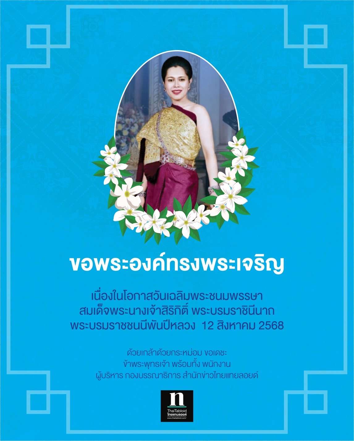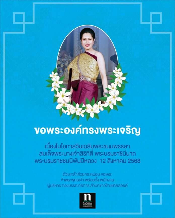 ทั่วไทยวัฒนธรรม-ประเพณีเด็กและเยาวชน ขอพระองค์ทรงพระเจริญ โดย ThaitabloidCrime - 12 ส.ค. 2025 918 FacebookFacebookXTwitterLINELine เนื่องในโอกาสวันเฉลิมพระชนมพรรษา สมเด็จพระนางเจ้าสิริกิติ์ พระบรมราชินีนาถ พระบรมราชชนนีพันปีหลวง 12 สิงหาคม 2568 ด้วยเกล้าด้วยกระหม่อม ขอเดชะ ข้าพระพุทธเจ้า พนักงาน พร้อมทั้งผู้บริหาร กองบรรณาธิการ สำนักข่าวไทยแทบลอยด์ FacebookFacebookXTwitterLINELine