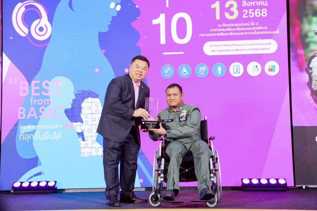 วันที่ 13 สิงหาคม 2568 นายธเนศพล ธนบุณยวัฒน์ ผู้ช่วยรัฐมนตรีประจำกระทรวงการพัฒนาสังคมและความมั่นคงของมนุษย์ เป็นประธานในงาน “เชิดชูเกียรติผู้นำคนพิการที่สร้างแรงบันดาลใจ TOP 10” เพื่อยกย่องเชิดชูเกียรติผู้นำคนพิการ จำนวน 19 คนที่สร้างแรงบันดาลใจ และเป็นตัวอย่างให้กับคนพิการและคนทั่วไปในสังคม ที่สามารถก้าวข้ามผ่านความพิการและปัญหาอุปสรรคที่ต้องเผชิญ สู่เส้นทางของความสำเร็จ โดยมี นายอนุกูล ปีดแก้ว ปลัดกระทรวงการพัฒนาสังคมและความมั่นคงของมนุษย์ (ปลัด พม.) กล่าวรายงาน และ ด.ต. วรวิทย์ ณะรัตตะ ตัวแทนคนพิการที่รับรางวัล กล่าวความรู้สึกและแรงบันดาลใจส่งต่อพลังบวกจากคนพิการสู่สังคม โดยถ่ายทอดเรื่องราวชีวิตของคนพิการที่ผ่านอุปสรรค และพัฒนาตนเองจนมีอาชีพ มีคุณค่า และกล้าออกมายืนหยัดต่อหน้าสังคม อีกทั้ง นายโชคชัย วิเชียรชัยยะ อธิบดีกรมส่งเสริมและพัฒนาคุณภาพชีวิตคนพิการ คณะผู้บริหารกระทรวง พม. ผู้อำนวยการองค์การสงเคราะห์ทหารผ่านศึก ในพระบรมราชูปถัมภ์ ผู้แทนองค์กรด้านคนพิการ คนพิการ และผู้ดูแลคนพิการ เข้าร่วมงาน ณ ห้องประชุมปกรณ์ อังศุสิงห์ ชั้น 2 อาคารกรมพัฒนาสังคมและสวัสดิการ กระทรวงการพัฒนาสังคมและความมั่นคงของมนุษย์ สะพานขาว กทม.