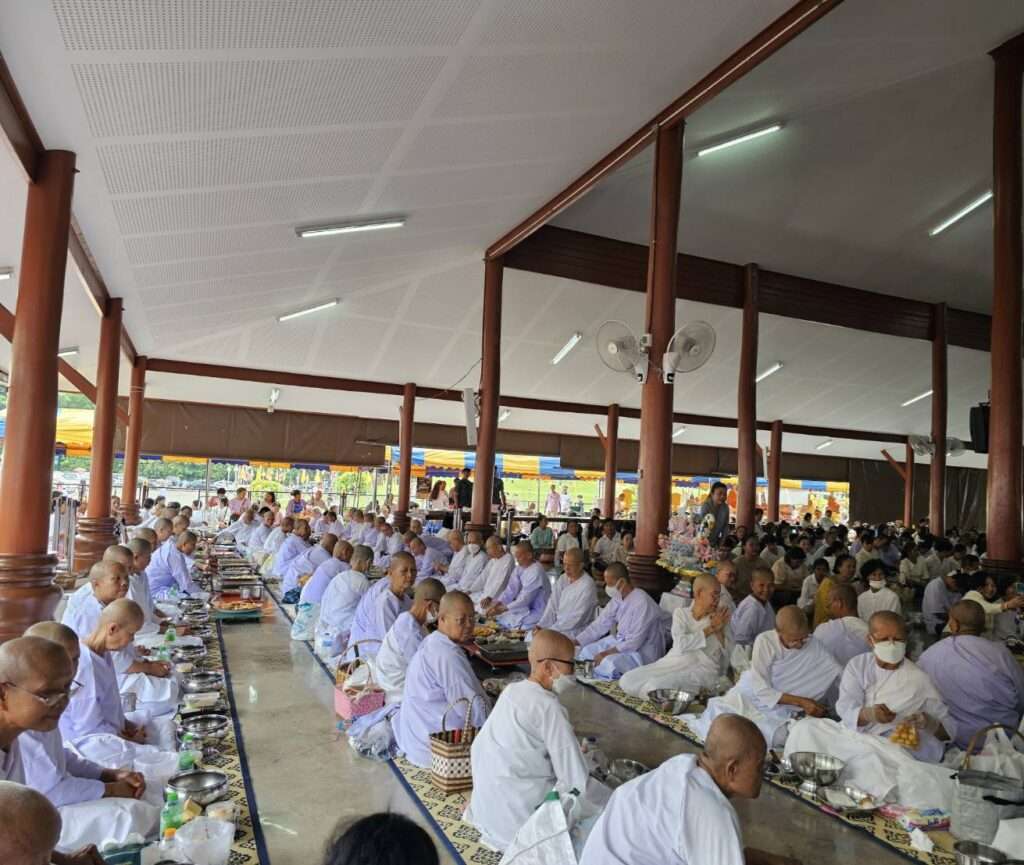 โดยคณะได้ใส่บาตร ถวายภัตตาหาร ถวายผ้าไตร เครื่องไทยธรรม สังฆทาน และ ถวายปัจจัย แก่พระภิกษุสงฆ์ และแม่ชีนับ 100 รูป