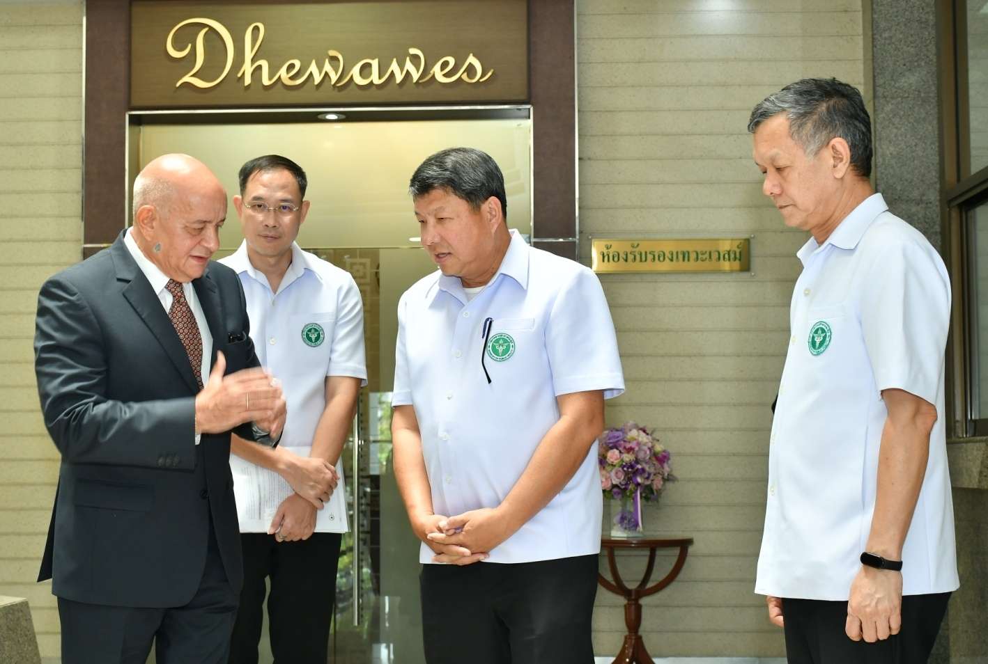 วันนี้ (14 สิงหาคม 2568) ที่สำนักงานปลัดกระทรวงสาธารณสุข จังหวัดนนทบุรี นายกิตติกร โล่ห์สุนทร ผู้ช่วยรัฐมนตรีประจำกระทรวงสาธารณสุข ให้การต้อนรับ นายเปโดร ปาโปล ซาน ฮอร์เฮ โรดริเกซ (H.E. Mr. Pedro Pablo San Jorge Rodriguez) เอกอัครราชทูตวิสามัญผู้มีอำนาจเต็มแห่งสาธารณรัฐคิวบาประจำประเทศไทย เพื่อหารือความร่วมมือด้านสาธารณสุขระหว่างทั้งสองประเทศ โดยมี นายแพทย์พงศธร พอกเพิ่มดี รองปลัดกระทรวงสาธารณสุข และผู้อำนวยการกองการต่างประเทศ ร่วมหารือ