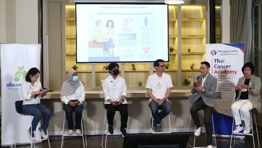 นอกจากนี้ เสียงจากผู้ป่วยจริงในงานก็ยิ่งสะท้อนภาพความจริงในสังคมไทยได้ชัดเจนขึ้น คุณวิศรุต อุ่นอารมณ์ ลูกชายผู้ดูแลคุณแม่ที่ป่วยเป็นมะเร็งปอดระยะที่ 4 กล่าวว่า แม้ครอบครัวเราจะใช้ชีวิตอย่างระมัดระวัง ใส่ใจสิ่งแวดล้อม ใช้เครื่องฟอกอากาศสม่ำเสมอ ปลูกต้นไม้รอบบ้าน และพยายามทำให้บ้านปลอดภัยที่สุด แต่เรากลับชะล่าใจ ไม่เคยพาคุณแม่ไปตรวจสุขภาพหรือคัดกรองมะเร็งปอด เพราะคิดว่าไม่มีความเสี่ยง เนื่องจากคุณแม่ไม่เคยสูบบุหรี่และไม่มีอาการผิดปกติใด ๆ จนต้นปีที่ผ่านมาเริ่มเบื่ออาหาร น้ำหนักลดลงอย่างผิดสังเกต ทั้งที่ไม่มีอาการไอหรือสัญญาณเตือนอื่น ๆ กระทั่งพบว่าเป็นมะเร็งปอดระยะที่ 4 ซึ่งตอนนั้นตับของคุณแม่อ่อนแอเกินกว่าจะใช้ยามุ่งเป้าได้ การรักษาจึงยากขึ้นมาก มะเร็งลุกลามไปยังกระดูกสันหลังและอวัยวะอื่น ๆ ทำให้ต้องเน้นการดูแลแบบประคับประคอง ทุกวันนี้คุณแม่ยังคงต่อสู้อย่างเข้มแข็ง ส่วนเราก็ให้กำลังใจและพยายามหาทางรักษาที่ดีที่สุดเพื่อคุณแม่อย่างไม่ย่อท้อ เพราะบทเรียนสำคัญที่เราได้เรียนรู้ คือ “อย่าชะล่าใจ แม้จะคิดว่าเราระมัดระวังมากแค่ไหนก็ตาม”
