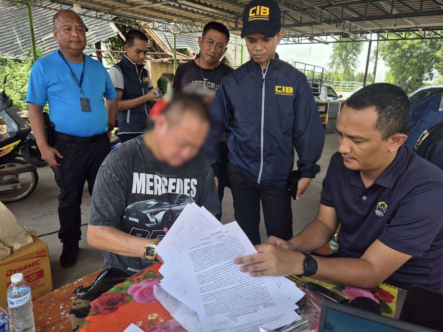 กองบัญชาการตำรวจสอบสวนกลาง (CIB) โดย กองบังคับการปราบปรามการกระทำความผิดเกี่ยวกับการคุ้มครองผู้บริโภค (บก.ปคบ.) ภายใต้การอำนวยการของ พล.ต.ท.จิรภพ ภูริเดช ผบช.ก. ได้สั่งการให้ พล.ต.ต.พัฒนศักดิ์ บุบผาสุวรรณ ผบก.ปคบ., พ.ต.อ.สำเริง อำพรรทอง รอง ผบก.ปคบ.,พ.ต.อ.ภาคภูมิ ศรีลาภะมาศ รอง ผบก.ปคบ., พ.ต.อ.อนุวัฒน์ รักษ์เจริญ รอง ผบก.ปคบ., พ.ต.อ.ชัฏฐ นากแก้ว รอง ผบก.ปคบ., พ.ต.อ.ปัญญา กล้าประเสริฐ รอง ผบก.ปคบ., พ.ต.อ.ปทักข์ ขวัญนา รอง ผบก.ปคบ,พ.ต.อ.เถกิงวุฒิ กิตติศุภคุณ รอง ผบก.ปคบ, พ.ต.อ.จักราวุธ วัฒนศิริ รอง ผบก.ปคบ, พ.ต.อ.พัฒนพงศ์ ศรีพิณเพราะ รอง ผบก.ปคบ., พ.ต.อ.ธนาทัศน์ ศรีพิพัฒน์ ผกก.(สอบสวน)ฯ รรท. ผกก.2 บก.ปคบ., พ.ต.ท.หญิง สุจิตรา ทองสกุล รอง ผกก.2 บก.ปคบ. เจ้าหน้าที่ตรวจสอบ นำโดย พ.ต.ท.ธีรภพ พันธุชาติ รอง ผกก.2 บก.ปคบ.,พ.ต.ท.จำรูญ คำมา สว.กก.2 บก.ปคบ., พ.ต.ท.พงษ์พนา กรีฑา สว.กก.2 บก.ปคบ., ร.ต.อ.กีรติ ถานโอภาส รอง สว.กก.2 บก.ปคบ., ร.ต.ท.อภิชาต คงคาหลวง., ร.ต.ท.สุพิษ แสนอุดร., ร.ต.ต.สุทธิรักษ์ โคช่วย รอง สว(ป).กก.2 บก.ปคบ.,ด.ต.สายัณห์ นายะคุปต์, ด.ต.สายันต์ วิเชียรเทียบ, ด.ต.สวโรจน์ ชะเอม, ด.ต.ธนิก โชคธนศักดิ, ด.ต.ต่วนอูเซ็น ต่วนจาหลง, ด.ต.พงศ์เดช เดชะ, ด.ต.ธนภัทร เศวตรัตน์, ผบ.หมู่ กก.2 บก.ปคบ. ร่วมกันตรวจสอบ บ้านหลังหนึ่ง ม.3 ต.ไผ่กองดิน อ.บางปลาม้า จ.สุพรรณบุรี พร้อมตรวจยึดของกลาง น้ำมันหล่อลื่นและน้ำมันไฮดรอลิก หลายรายการ ปริมาณกว่า 4,400 ลิตรฝาถังน้ำมัน, อุปกรณ์สูบถ่าย, อุปกรณ์เคลื่อนย้าย และอุปกรณ์ตวงน้ำมัน รวมมูลค่าประมาณ 200,000 บาท สถานที่เกิดเหตุ บ้านหลังหนึ่ง ม.3 ต.ไผ่กองดิน อ.บางปลาม้า จ.สุพรรณบุรี