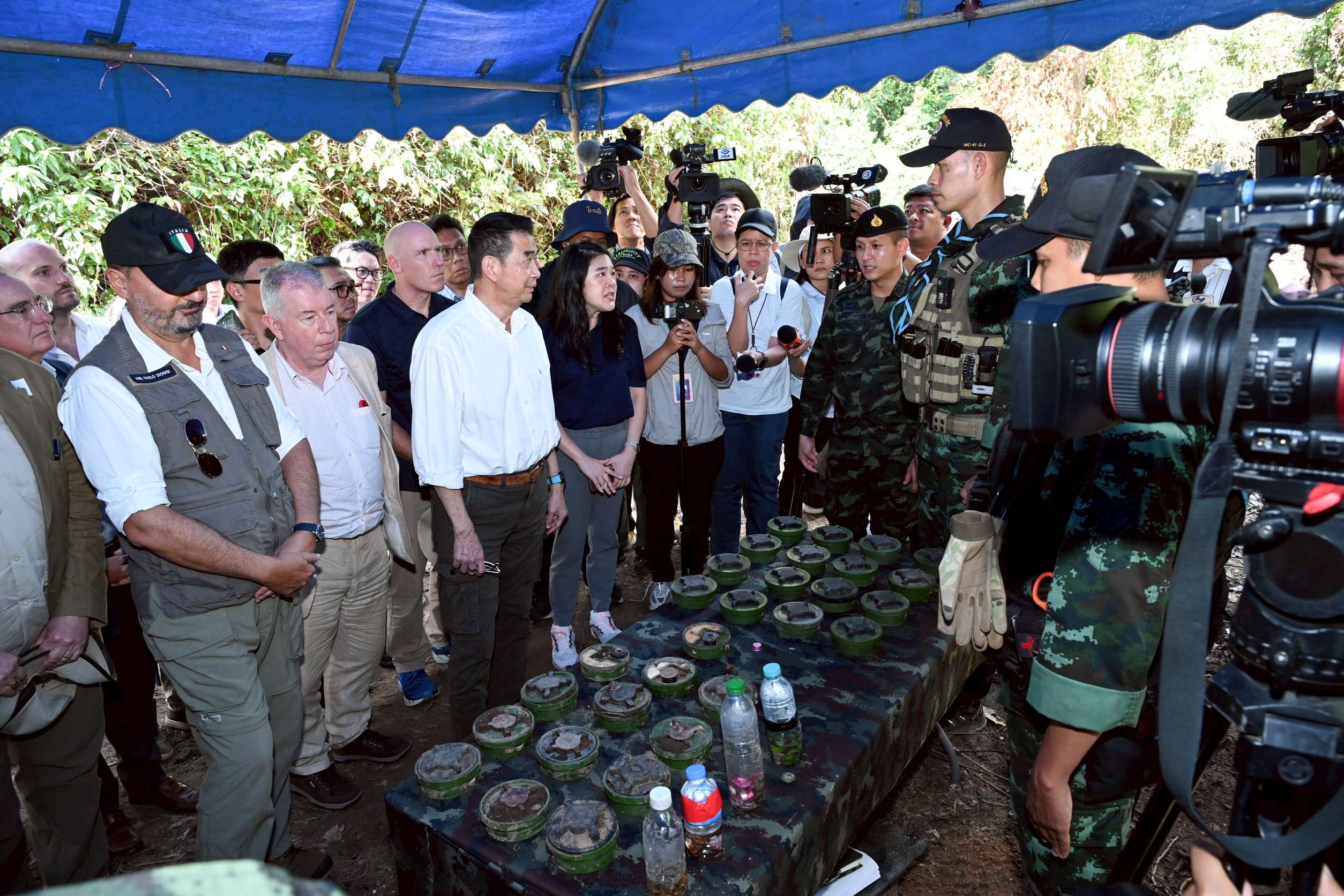 พลตรี วินธัย สุวารี โฆษกกองทัพบกกล่าวว่า ทุ่นระเบิดที่นำมาจัดแสดงให้คณะผู้แทนจากต่างประเทศได้ดู ในส่วนที่นายเฮง รัตนากล่าวว่ายังไม่ดึงสลักนิรภัยออกนั้น ถูกตรวจพบจากการเข้าตรวจค้นและทำพื้นที่ให้ปลอดภัยโดยหน่วยทหารช่าง เมื่อวันที่ 4 ส.ค. 68 บริเวณพื้นที่ภูมะเขือ ในจุดที่ทหารกัมพูชาเคยวางกำลังอยู่บริเวณดังกล่าวฝ่ายไทยได้ตรวจพบทุ่นระเบิดเป็นจำนวนมาก ส่วนใหญ่เป็นทุ่นระเบิดแบบ PMN-2 ซึ่งที่พบมีทั้ง 2 ลักษณะ คือ ทุ่นระเบิดที่เก็บไว้ยังไม่ได้นำไปติดตั้ง จึงเห็นในภาพว่ายังมีสลักนิรภัยติดอยู่ และ ทุ่นระเบิดที่ติดตั้งแล้ว ซึ่งในกรณีนี้จะไม่มีสลักนิรภัย