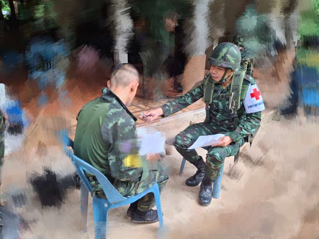 ทีมโฆษก ทบ. กล่าวว่า 2. การดูแลระหว่างปฏิบัติภารกิจ จัดตั้งหน่วยพยาบาลสนามและจุดบริการทางการแพทย์ใกล้พื้นที่ปฏิบัติการ รวมถึงการจัดทีมดูแลสุขภาพจิต (M-MCATT) ที่ทำหน้าที่ค้นหา เฝ้าระวัง และให้การช่วยเหลือกำลังพลที่เผชิญความเครียดหรือมีภาวะเสี่ยงทางจิตใจ มุ่งเน้นทั้งการสังเกตอาการ ประเมินความรุนแรง ให้คำปรึกษาและบำบัดเบื้องต้น ตลอดจนการส่งต่อเพื่อการรักษาที่เหมาะสม นอกจากนี้ยังมีการตรวจรักษาอาการเจ็บป่วยทั่วไป การเฝ้าระวังโรคระบาด และการจัดระบบส่งกลับผู้บาดเจ็บในกรณีฉุกเฉิน เพื่อให้ได้รับการรักษาอย่างทันท่วงที ลดการสูญเสียกำลังพล อีกทั้งยังมีภารกิจช่วยเหลือประชาชนในพื้นที่ เพื่อสร้างความสัมพันธ์อันดีกับชุมชนและเสริมสร้างความมั่นคงจากภายใน