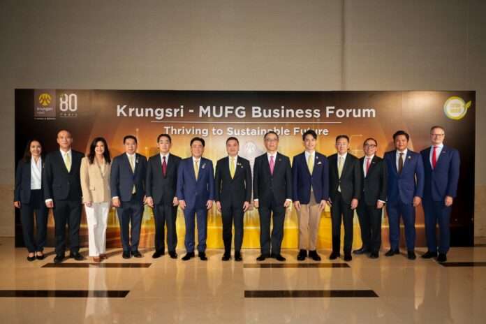 กรุงศรี (ธนาคารกรุงศรีอยุธยา จำกัด (มหาชน)) ก้าวสู่ความสำเร็จในวาระครบรอบปีที่ 80 ด้วยวิสัยทัศน์มุ่งสู่การเป็นธนาคารแห่งภูมิภาคเพื่อความยั่งยืน โดยร่วมมือกับ MUFG หนึ่งในกลุ่มสถาบันการเงินที่ใหญ่ที่สุดในโลก จัดงานสัมมนาสุดยิ่งใหญ่แห่งปี Krungsri-MUFG Business Forum 2025 ภายใต้แนวคิด “Thriving to Sustainable Future” เวทีที่รวบรวมผู้นำจากหลากหลายอุตสาหกรรมมาร่วมแลกเปลี่ยนมุมมองและกลยุทธ์การเติบโตท่ามกลางความผันผวนของเศรษฐกิจโลก พร้อมตอกย้ำพันธกิจระยะยาวร่วมกันของทั้งสององค์กรในการขับเคลื่อนความก้าวหน้าทางเศรษฐกิจและสังคมของประเทศไทยอย่างยั่งยืน