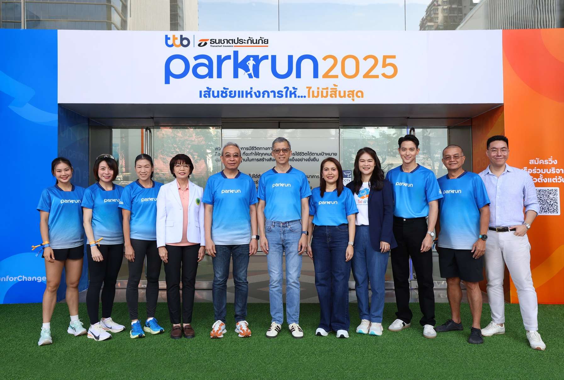 นายปิติ ตัณฑเกษม ประธานเจ้าหน้าที่บริหาร ทีเอ็มบีธนชาต (ที่ 6 จากซ้าย) และนายฐากร ปิยะพันธ์ ผู้จัดการใหญ่ ทีเอ็มบีธนชาต (ที่ 5 จากซ้าย) พร้อมด้วยพันธมิตร นางวิชินี โอรพันธ์ ประธานเจ้าหน้าที่บริหาร ธนชาตประกันภัย (ที่ 7 จากซ้าย) เชิญชวนร่วมงานเดิน-วิ่งมินิมาราธอนการกุศลแห่งปี “ทีทีบี | ธนชาตประกันภัย พาร์ครัน 2025” งานวิ่งที่จะชวนทุกคน Run for Change เพื่อเปลี่ยนให้ทุกก้าววิ่งไม่ได้จบที่เส้นชัย แต่ช่วยส่งต่อโอกาสให้น้อง ๆ มีชีวิตที่ดีขึ้น โดยรายได้จากการจำหน่ายบัตรวิ่งและเงินบริจาคไม่หักค่าใช้จ่าย มอบให้ผู้ป่วยเด็กของโรงพยาบาลท้องถิ่น 6 แห่ง และน้อง ๆ ภายใต้โครงการไฟ-ฟ้า โดย มูลนิธิทีทีบีสามารถสมัครวิ่งได้ 2 ประเภท คือ Parkrun วิ่งจริงใน 4 สวนสวยใจกลางกรุงเทพฯ พร้อมกันในวันที่ 14 ธันวาคม 2568 และ Virtual Parkrun วิ่งสะสมระยะ ได้ตั้งแต่วันนี้ – 14 ธันวาคม 2568 เปิดจำหน่ายบัตรวิ่งตั้งแต่วันนี้ – 15 พฤศจิกายน 2568 และร่วมบริจาคได้แล้วตั้งแต่วันนี้- 14 ธันวาคม 2568 ที่ https://parkrun.ttbfoundation.org โดยค่าบัตรวิ่งสามารถนำไปลดหย่อนภาษีได้ 1 เท่า และเงินบริจาคให้โรงพยาบาลสามารถนำไปลดหย่อนภาษีได้ 2 เท่า มาช่วยให้น้อง ๆ มีชีวิตที่ดีขึ้นไปพร้อมกัน