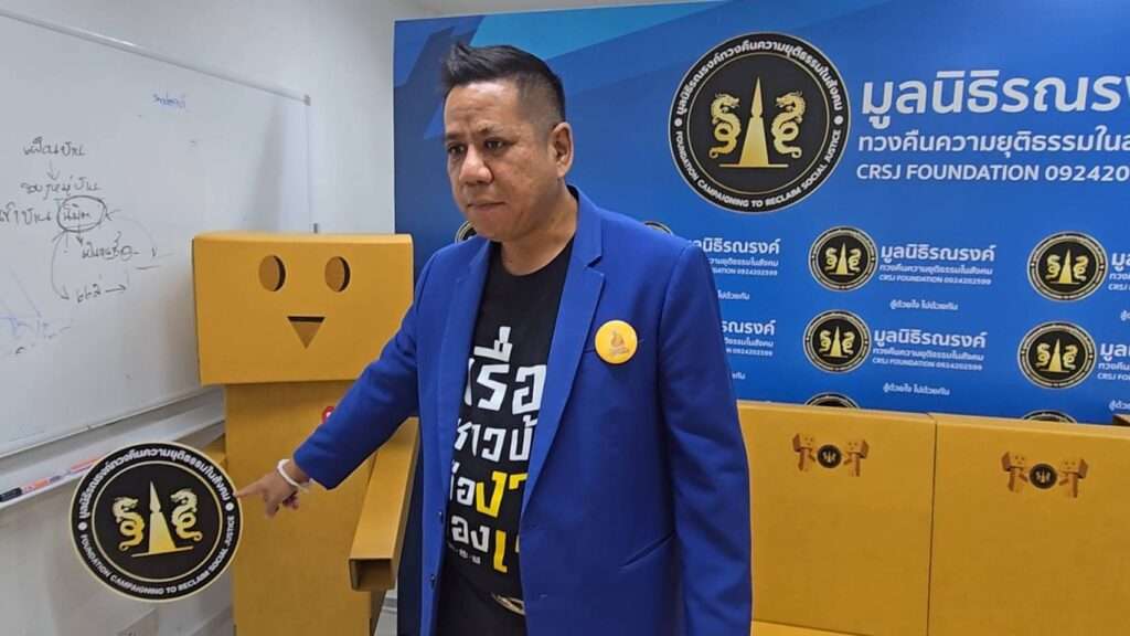 วันที่ 17 ส.ค. 68 ที่สำนักงานมูลนิธิรณรงค์ทวงคืนความยุติธรรมในสังคม ถนนแจ้งวัฒนะ ตำบลบางตลาด อำเภอปากเกร็ดจังหวัดนนทบุรี ผู้สื่อข่าวได้มีโอกาสเข้าเยี่ยมชมเฟอร์นิเจอร์ชุดใหม่ทั้งหมดที่ทำจากกล่องกระดาษ ตั้งแต่โต๊ะกลางตัวใหญ่ที่ใช้ในการแถลงข่าวสำหรับสื่อมวลชน อีกทั้งเก้าอี้นั่งจำนวนหลายสิบตัว รวมทั้งตัวมาสคอตตั้งไว้โชว์ในสำนักงาน และที่สำคัญยังมีชุดวางไมค์ไว้ให้ผู้สื่อข่าวจากหลายสำนักไว้ตั้งลองไมค์ได้จำนวนนับสิบไมค์ เพื่ออำนวยความสะดวกให้สื่อมวลชนหลายสำนัก โดยทั้งหมดทำจากวัสดุที่เป็นกระดาษทั้งสิ้น