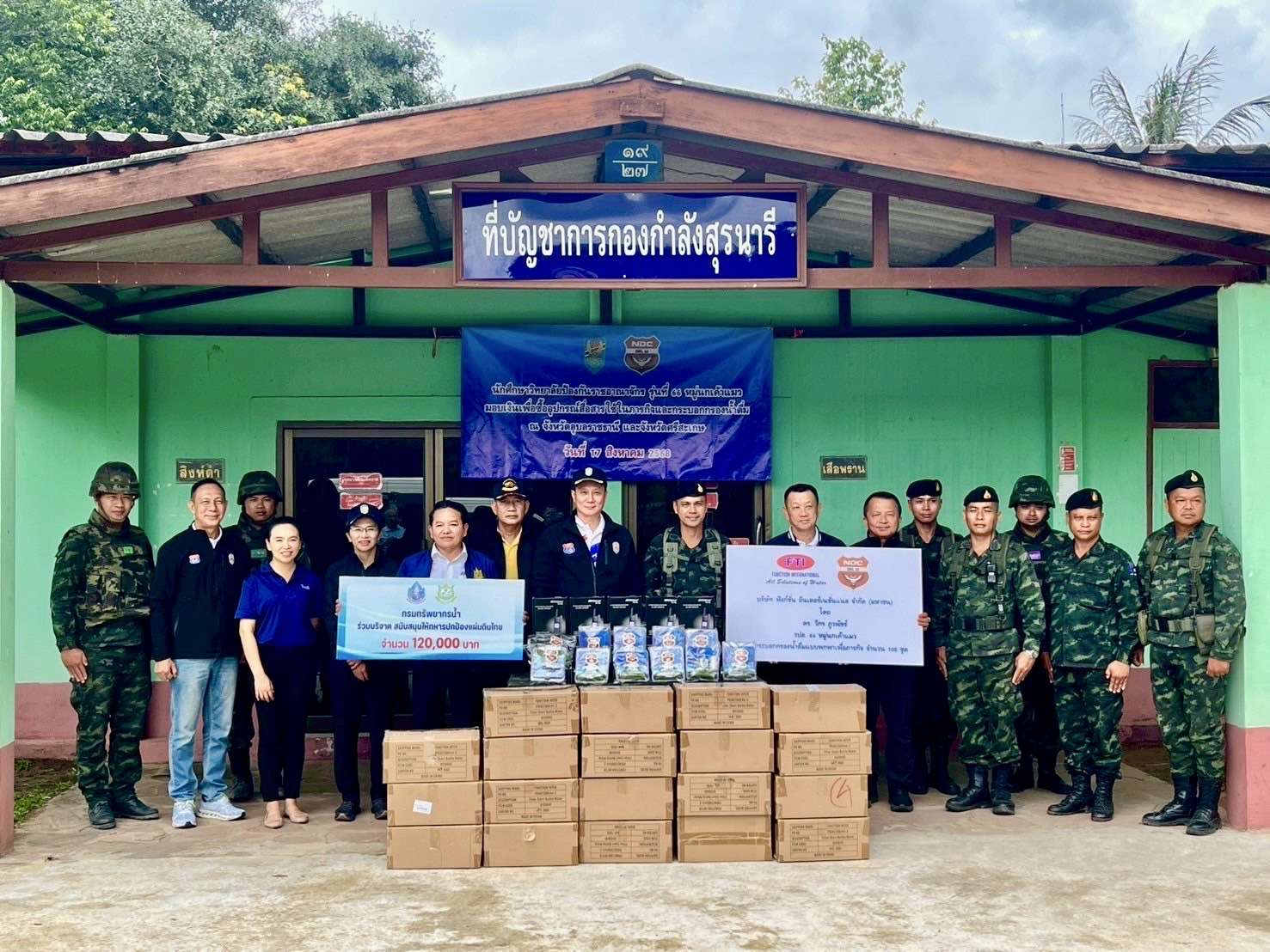 ศรีสะเกษ – วันที่ 17 สิงหาคม 2568 ดร.วิกร ภูวิพัชร์ ประธานเจ้าหน้าที่บริหาร บริษัท ฟังก์ชั่น อินเตอร์เนชั่นแนล จำกัด (มหาชน) พร้อมด้วย พญ.ณัฐยา รีชตะวรรณ, พลโท ฐิตวัชร์ เสถียรทิพย์, พลตรี สัมพันธ์ ดำรงค์กุล และพันเอกจักริน จิตคติ ในฐานะผู้แทน นักศึกษาวิทยาลัยป้องกันราชอาณาจักร (วปอ.66) หมู่นกเค้าแมว ได้เดินทางลงพื้นที่ อ.กันทรลักษณ์ จ.ศรีสะเกษ เพื่อมอบ เครื่องมือสื่อสารและเครื่องกรองน้ำแบบพกพา จำนวน 100 ชุด พร้อมเงินสนับสนุนการจัดหาอุปกรณ์จำเป็น ให้แก่ กองกำลังสุรนารี ที่ปฏิบัติภารกิจพิทักษ์ชายแดนไทย