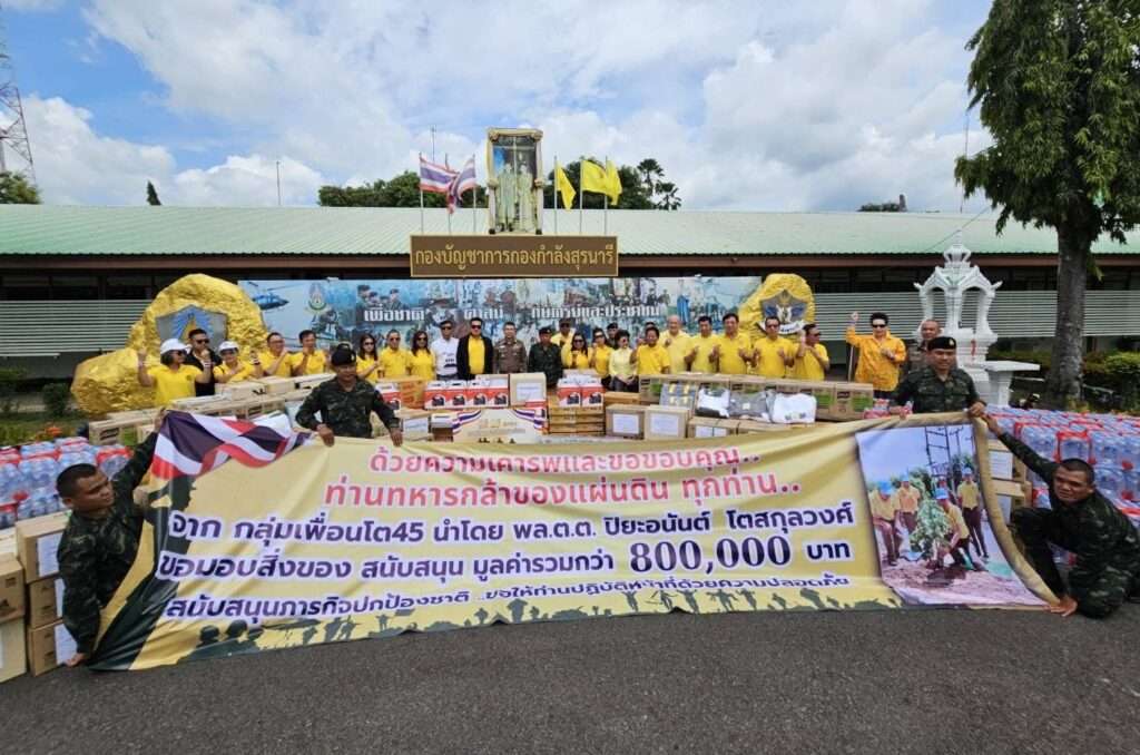 เมื่อวันที่ 18 ส.ค.68 ที่กองกำลังสุรนารี มณฑลทหารบกที่ 25 ค่ายวีรวัฒน์โยธิน อ.เมือง จ.สุรินทร์ ผู้สื่อข่าวรายงานว่า พล.ต.ต.ปิยะอนันต์ โตสกุลวงศ์ รอง ผบช.สทส.เปิดเผยว่า เนื่องด้วยสถานการณ์ความไม่สงบในพื้นที่ชายแดน ไทย – กัมพูชา นั้น ส่งมอบสิ่งของบำรุงขวัญเป็นกำลังใจแก่ทหารชายแดน วันนี้ตนพร้อมคณะ ”กลุ่ม Papaya และกลุ่มเพื่อนรองฯโต“ได้รวบรวมเงินได้ 800,000 นำไปซื้อสิ่งของจำเป็นในการดำรงชีพประจำวัน แล้วยังมีกลุ่มพวกเพื่อนที่ซื้อของมากันเองอีกประมาณ 400,000 บาท รวมๆ ได้ประมาณ 1,200,000 บาท