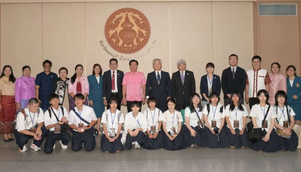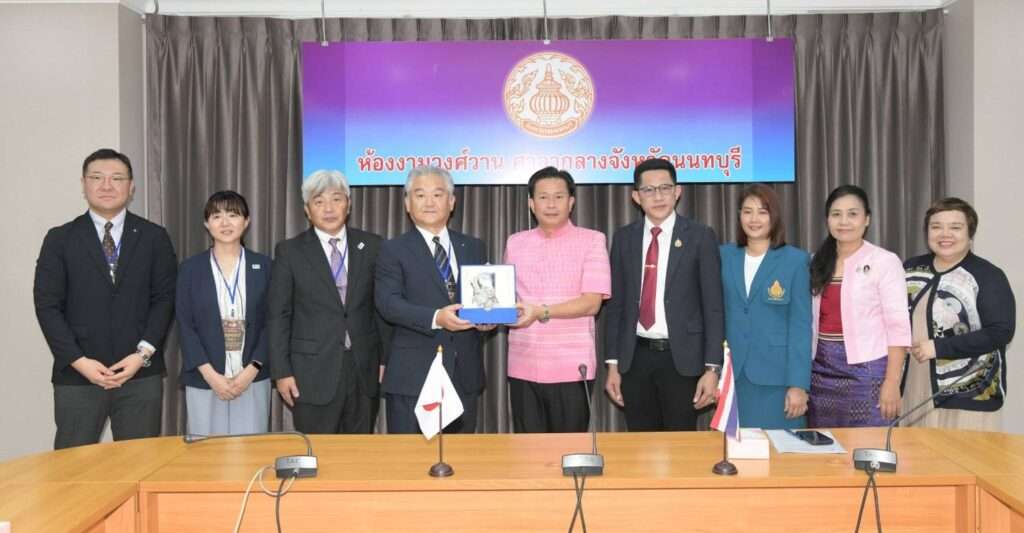 วันนี้ (19 สิงหาคม 2568) เวลา 08.30 น. ณ ห้องประชุมงามวงศ์วาน ศาลากลางจังหวัดนนทบุรี นายเกียรติศักดิ์ ตรงศิริ ผู้ว่าราชการจังหวัดนนทบุรี ให้การต้อนรับและรับการเยี่ยมคารวะจากคณะนักเรียนระดับชั้นมัธยมศึกษาตอนต้น ผู้อำนวยการโรงเรียน ครูผู้สอน และเจ้าหน้าที่จากสำนักงานศึกษาธิการเมืองมิซาโตะ ประเทศญี่ปุ่น จำนวน 16 คน ซึ่งนำโดยนายเอกกร สีตามาตย์ ผู้อำนวยการสำนักงานเขตพื้นที่การศึกษาประถมศึกษานนทบุรีเขต 1 ตามโครงการแลกเปลี่ยนนักเรียนระดับมัธยมศึกษาตอนต้น กับคณะกรรมการศึกษาธิการเมืองมิซาโตะ จังหวัดอาคิตะ ประเทศญี่ปุ่น ในโอกาสที่ได้มาร่วมโครงการในประเทศไทย ระหว่างวันที่ 18 – 22 สิงหาคม 2568 ณ โรงเรียนอนุราชประสิทธิ์