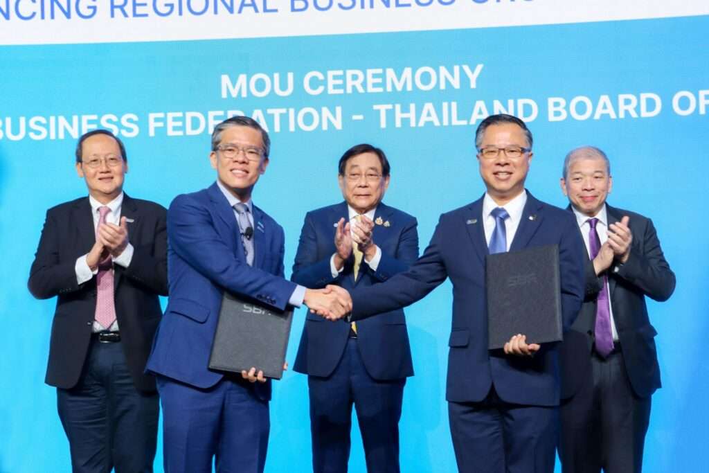 ทั้งนี้ ในงานนี้ เลขาธิการบีโอไอและซีอีโอสภาธุรกิจสิงคโปร์ (SBF) ได้ลงนามบันทึกความเข้าใจ (MOU) เพื่อเสริมสร้างความร่วมมือด้านการลงทุนในอุตสาหกรรมเป้าหมาย อาทิ อุตสาหกรรมอาหาร อิเล็กทรอนิกส์ขั้นสูง การแพทย์ เทคโนโลยีชีวภาพ และการท่องเที่ยว พร้อมมุ่งขับเคลื่อนเศรษฐกิจดิจิทัลและเศรษฐกิจสีเขียวร่วมกัน