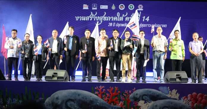 วันที่ 19 ส.ค. 2568 สำนักงานคณะกรรมการสุขภาพแห่งชาติ (สช.) ร่วมกับสำนักงานกองทุนสนับสนุนการสร้างเสริมสุขภาพ (สสส.) , สำนักงานหลักประกันสุขภาพแห่งชาติ (สปสช.), กระทรวงสาธารณสุข (สธ.) สถาบันพัฒนาองค์กรชุมชน (พอช.), องค์การบริหารส่วนจังหวัดตรัง, สมัชชาสุขภาพจังหวัดตรัง มหาวิทยาลัยสงขลานครินทร์ และภาคีเครือข่ายภาคใต้ ร่วมพิธีเปิดงาน “สร้างสุขภาคใต้ ครั้งที่ 14” ภายใต้แนวคิด 20 ปี ปลุกพลังวิถีถิ่นใต้ สู่สุขภาวะแห่งอนาคต ณ ศูนย์ประชุมเฉลิมพระเกียรติ 7 รอบพระชนมพรรษา มหาวิทยาลัยสงขลานครินทร์ วิทยาเขตตรัง จ.ตรัง