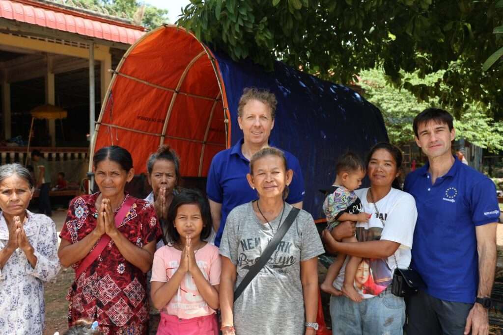 อย่างไรก็ตามวันเดียวกัน ในเว็บไซต์ของคณะผู้แทนสหภาพยุโรปประจำประเทศกัมพูชาได้รายงานข่าวเดียวกัน แต่มีภาพประกอบเป็นภาพชายชาวตะวันตก 2 คนสวมเสื้อมีสัญลักษณ์อียูยืนร่วมกับเด็ก หญิงชรา และสตรีที่ยกมือไหว้ โดยเขียนบรรยายภาพว่าถ่ายที่พนมเปญ พร้อมข้อมูลเพิ่มเติมที่ระบุว่า “เงินทุนนี้จะสนับสนุนชุมชนที่ได้รับผลกระทบจากความขัดแย้งมากที่สุด ซึ่งนำไปสู่การอพยพครั้งใหญ่ ความช่วยเหลือของสหภาพยุโรปจะสนับสนุนการแทรกแซงในด้านเงินช่วยเหลืออเนกประสงค์ (MPCA) การสนับสนุนด้านสุขภาพจิตและจิตวิทยา (MHPSS) และการติดตามการอพยพ (DTM) เป็นระยะเวลาสูงสุด 6 เดือน”