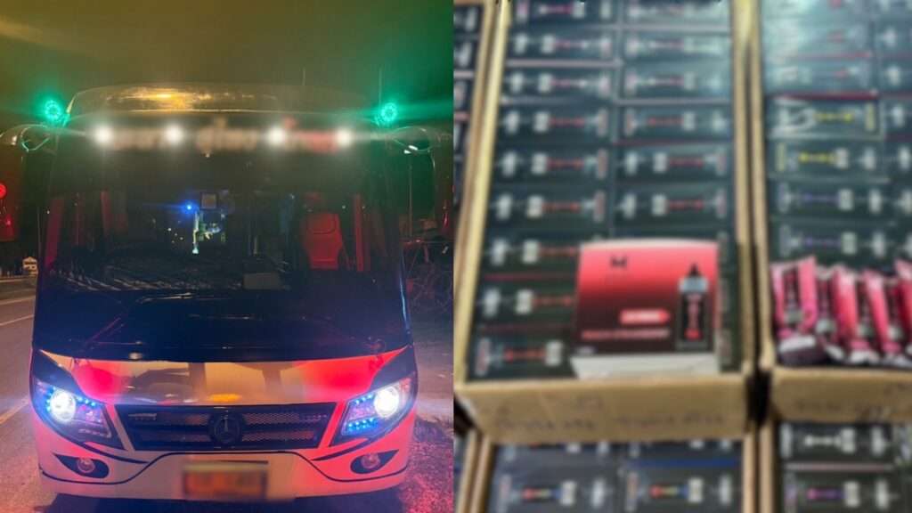 ผลการตรวจค้น ปรากฎว่าพบ บุหรี่ไฟฟ้า จำนวน 8 ลังๆ ละ 18 กล่องๆ ละ 10 ชิ้น รวมทั้งสิ้น 1,440 ชิ้น บรรจุในลังสีน้ำตาลวางอยู่ภายในรถบริเวณใต้ชั้นวางเท้าที่นั่งของผู้โดยสาร (ไม่มีผู้โดยสาร) ซึ่งสินค้าที่ผู้ถูกจับบรรทุกมาเป็นสินค้าที่ไม่ได้ผลิตขึ้นในราชอาณาจักร ไม่มีแหล่งที่มาที่แน่ชัด และผู้ถูกจับไม่มีเอกสารประกอบเกี่ยวกับการนำสินค้าเหล่านี้เข้ามาในราชอาณาจักรแต่อย่างใด เจ้าหน้าที่ตำรวจชุดจับกุม จึงตรวจยึดสินค้าดังกล่าวไว้เป็นของกลาง รายละเอียดปรากฏตามรายการของกลางข้างต้น