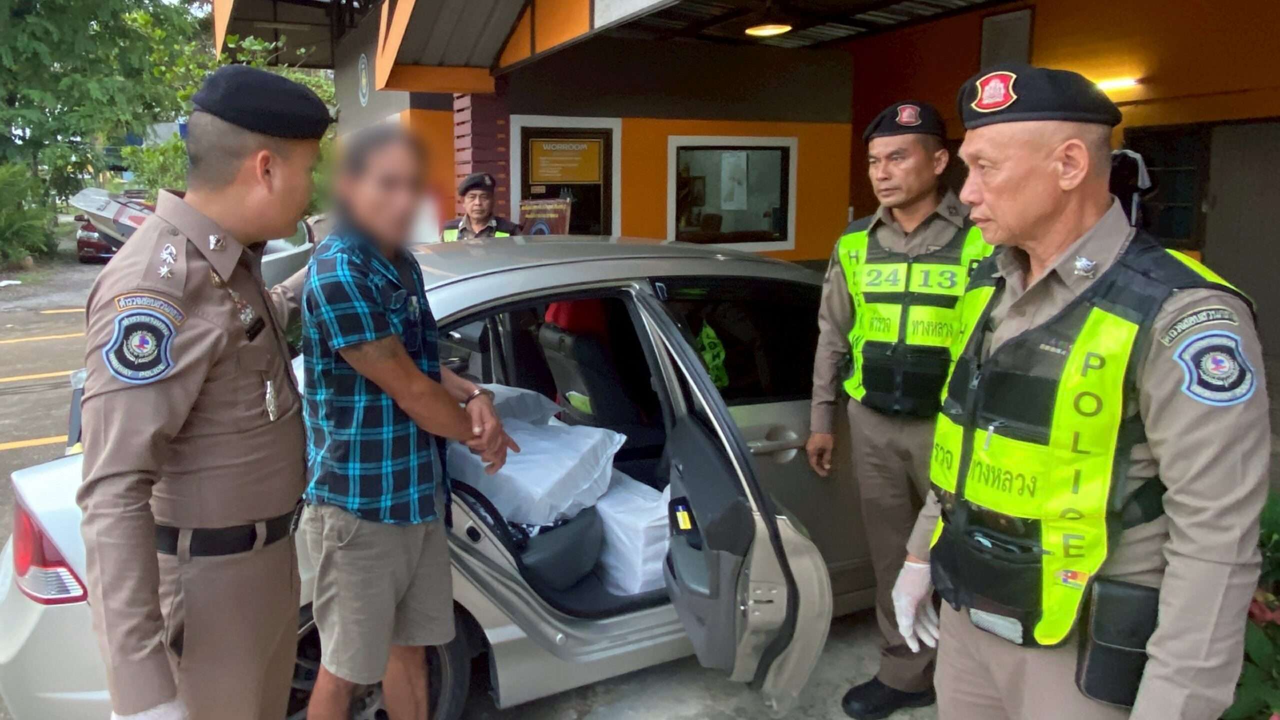 พฤติการณ์ เมื่อวันที่ 17 สิงหาคม 2568 เวลาประมาณ 12.00 น. ขณะเจ้าหน้าที่ตำรวจทางหลวงชุมพร ออกตรวจพื้นที่บนถนนทางหลวงหมายเลข 41 ช่วง กม.18+400 ขาล่องใต้ พื้นที่ตำบลวิสัยเหนือ อำเภอเมือง จังหวัดชุมพร เจ้าหน้าที่ได้สังเกตเห็น รถเก๋งฮอนด้า ซีวิค สีบรอนซ์น้ำตาล มีพฤติกรรมน่าสงสัย เนื่องจากติดฟิล์มดำทึบผิดปกติ คาดว่าจงใจจะใช้รถยนต์ในการอำพรางบรรทุกสิ่งของผิดกฎหมาย นอกจากนี้ยังพบว่าช่วงท้ายรถคันดังกล่าวมีลักษณะห้อยต่ำ คล้ายบรรทุกสิ่งของที่มีน้ำหนักจำนวนมาก เจ้าหน้าที่จึงได้ทำการตรวจสอบทะเบียนรถคันดังกล่าวในระบบฐานข้อมูล Big Data ของตำรวจสอบสวนกลาง พบว่าเจ้าของรถคันดังกล่าวมีประวัติเกี่ยวข้องกับยาเสพติด ซึ่งต่อมาเมื่อผู้ขับขี่รถคันต้องสงสัยได้พบกับรถของเจ้าหน้าที่ตำรวจ ผู้ขับขี่กลับชะลอความเร็ว แสดงอาการพิรุธจนเป็นเหตุให้เจ้าหน้าที่ตำรวจทางหลวงทำการเรียกตรวจสอบ ซึ่งเมื่อเจ้าหน้าที่ตำรวจเรียกรถยนต์คันดังกล่าวให้หยุดได้แล้วนั้น เจ้าหน้าที่พบพิรุธว่าผู้ขับขี่มีอาการรีบเดินลงมาจากรถทันที ซึ่งคาดว่าเป็นการพยายามที่จะไม่ให้เจ้าหน้าที่ตำรวจเดินไปที่รถ จากพิรุธดังกล่าวเจ้าหน้าที่ตำรวจจึงได้เข้าทำการตรวจค้นรถคันดังกล่าวอย่างละเอียด โดยพบกระสอบปุ๋ยสีขาว 5 กระสอบ ซุกซ่อนอยู่ในห้องโดยสารและท้ายรถ ซึ่งเมื่อเปิดกระสอบออกมาพบเป็น “ยาบ้า” บรรจุแท่งพลาสติกอย่างแน่นหนา จำนวน 100 มัด หรือ 1,000,000 เม็ด
