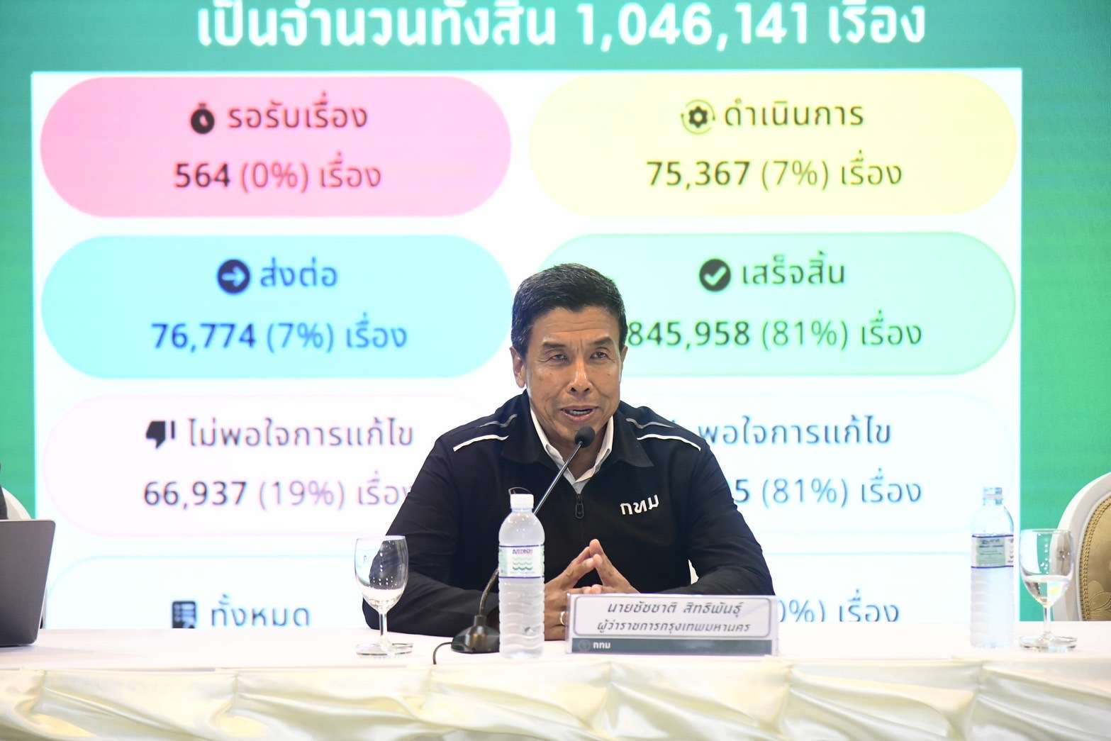 ทั้งนี้ ปัจจุบันมีประชาชนส่งเรื่องร้องเรียนผ่าน Traffy Fondue รวมทั้งหมด 1,046,243 เรื่อง ดำเนินการเสร็จสิ้นแล้ว 846,104 เรื่อง อยู่ระหว่างดำเนินการ 75,368 เรื่อง รอรับเรื่อง 551 เรื่อง และส่งต่อ 75,735 เรื่อง สำหรับ 5 อันดับที่ประชาชนแจ้งเข้ามามากที่สุด ได้แก่ 1.ผิดกฎจราจร (13.04%) 2.ไฟฟ้า (12.7%)3.ถนน (10.85%) 4.ทางเท้า (7.95%) และ 5.ความสะอาด (6.12%)