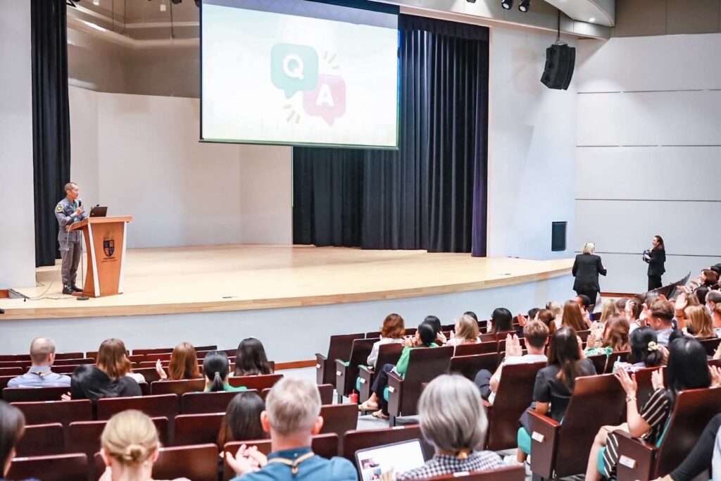 เมื่อวันที่ 20 ส.ค.68 ตำรวจสอบสวนกลาง (CIB) โดย ทีมวิทยากรชุดปฎิบัติการพิเศษหนุมาน บรรยายให้ความรู้หลักการรับมือสถานการ์ณฉุกเฉินเหตุกราดยิงในสถานศึกษา (School Active Shooter Response Training) และ แนวทางป้องกันการก่อเหตุด้วยวัตถุระเบิดและวัตถุต้องสงสัย (Bomb Threat and Suspicious Package Respose) หลักการเอาชีวิตรอด Run Hide Fight และการประยุกต์สิ่งของและอุปกรณ์รอบตัว ให้แก่ ครูและเจ้าหน้าที่ โรงเรียนนานาชาติ Shrewsbury International School Bangkok City Campus
