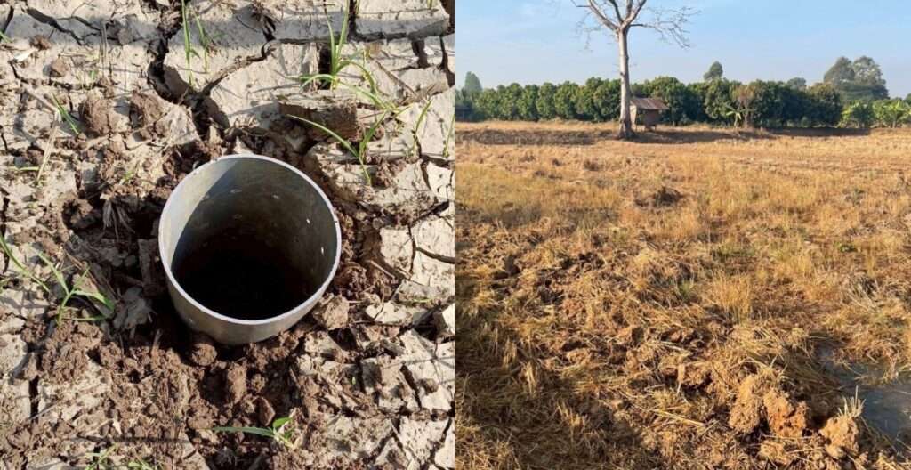 วิธีที่ 5 : การจัดการน้ำแบบเปียกสลับแห้ง (Alternate Wetting and Drying) เป็นเทคนิคการจัดการน้ำในนาข้าวที่เน้นการลดการใช้น้ำ ไม่ส่งผลเสียต่อผลผลิต ลดการปล่อยก๊าซเรือนกระจก โดยนายถาวร คำแผง เกษตรกร อ.เดิมบางนางบวช จ.สุพรรณบุรี สามารถลดการใช้น้ำ ลดศัตรูพืช ลดการแย่งชิงน้ำ และยังทำให้ต้นข้าวแข็งแรง อีกทั้งเป็นการทำนาคาร์บอนต่ำ สามารถลดต้นทุน 495 บาท/ไร่ ผลผลิตเพิ่ม 350 กก./ไร่ สร้างรายได้เพิ่ม 400 บาท/ไร่