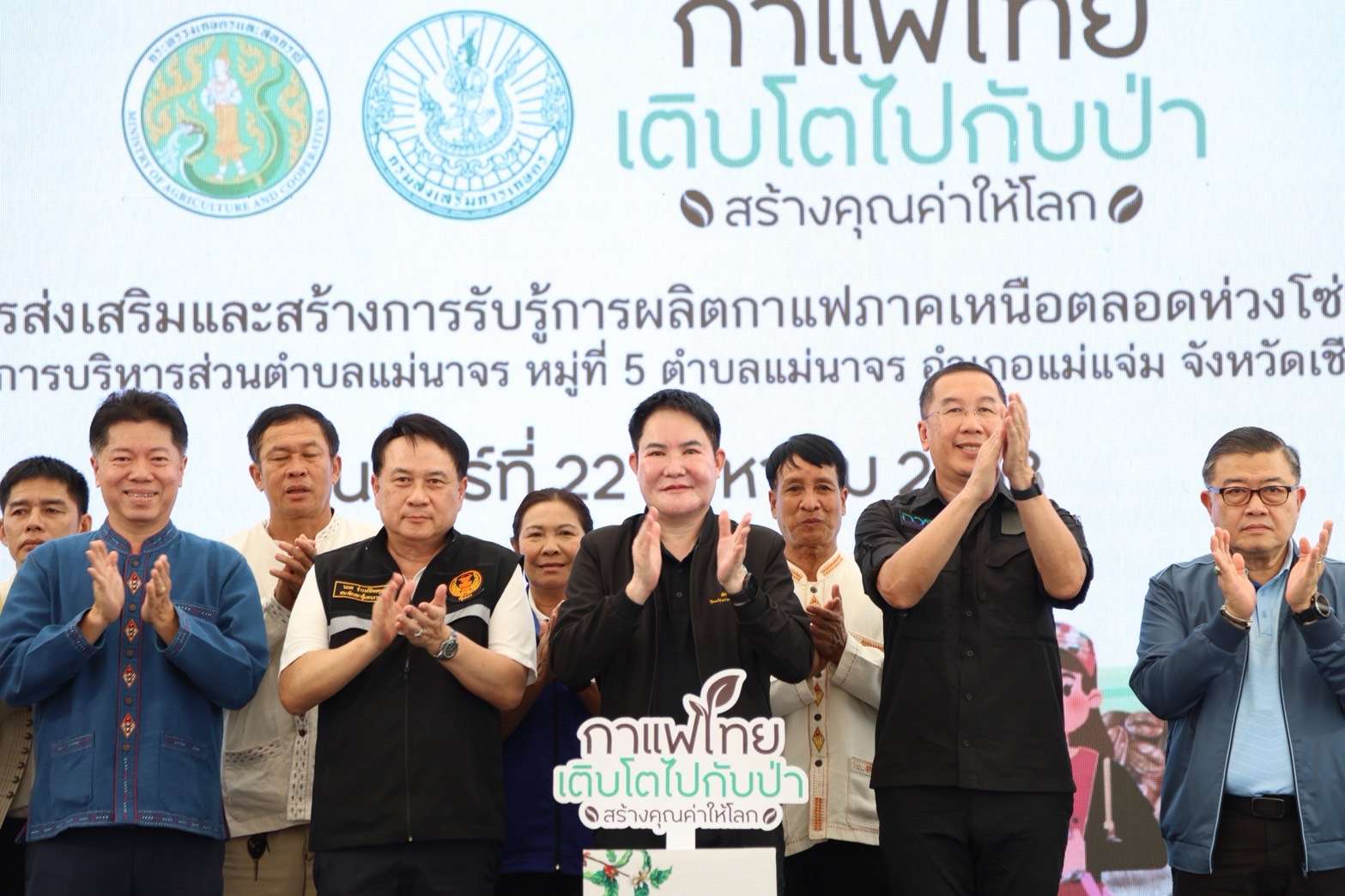 เมื่อวันที่ 22 สิงหาคม 2568 นายอัครา พรหมเผ่า รัฐมนตรีช่วยว่าการกระทรวงเกษตรและสหกรณ์ เป็นประธานเปิดงาน Kick Off “กาแฟไทย เติบโตไปกับป่า สร้างคุณค่าให้โลก” ภายใต้โครงการส่งเสริมและสร้างการรับรู้การผลิตกาแฟภาคเหนือตลอดห่วงโซ่อุปทาน โดยมี นายพีรพันธ์ คอทอง อธิบดีกรมส่งเสริมการเกษตร ผู้บริหารหน่วยงานในสังกัด.กระทรวงเกษตรและสหกรณ์ และเกษตรกร เข้าร่วม ณ องค์การบริหารส่วนตำบลแม่นาจร อำเภอแม่แจ่ม จังหวัดเชียงใหม่