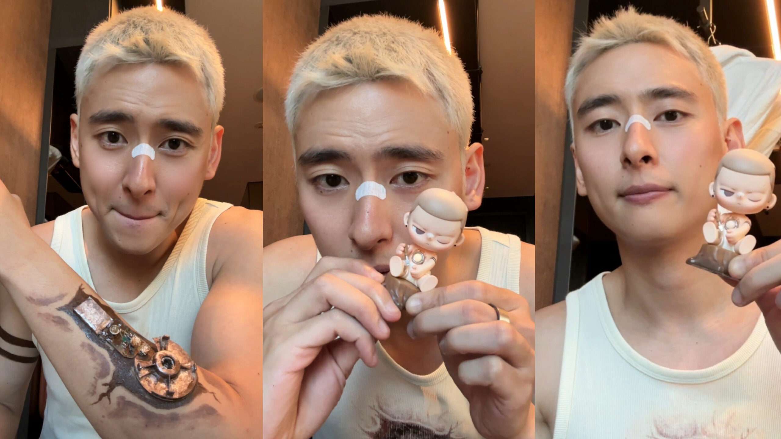 สำหรับการมางานในครั้งนีัทั้งตื่นเต้นและดีใจที่ทาง POP MART GLOBAL เห็นถึงความทุ่มเทในการทำแต่งแต่ละชุดที่ผ่านมาและชวนผมมาร่วมสนุกในงานใหญ่ครั้งนี้ หลังจากรู้ว่าต้องมาร่วมงานครั้งนี้ผมก็เตรียมตัวล่วงหน้าเกือบทั้งอาทิตย์เพื่อให้ชุดนี้ออกมาสมบูรณ์และดูสร้างสรรค์ที่สุด และอยากจะให้ทุกคนจะรู้สึกสนุกไปกับลุคนี้ และคลิปของผมครับ”