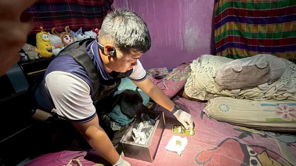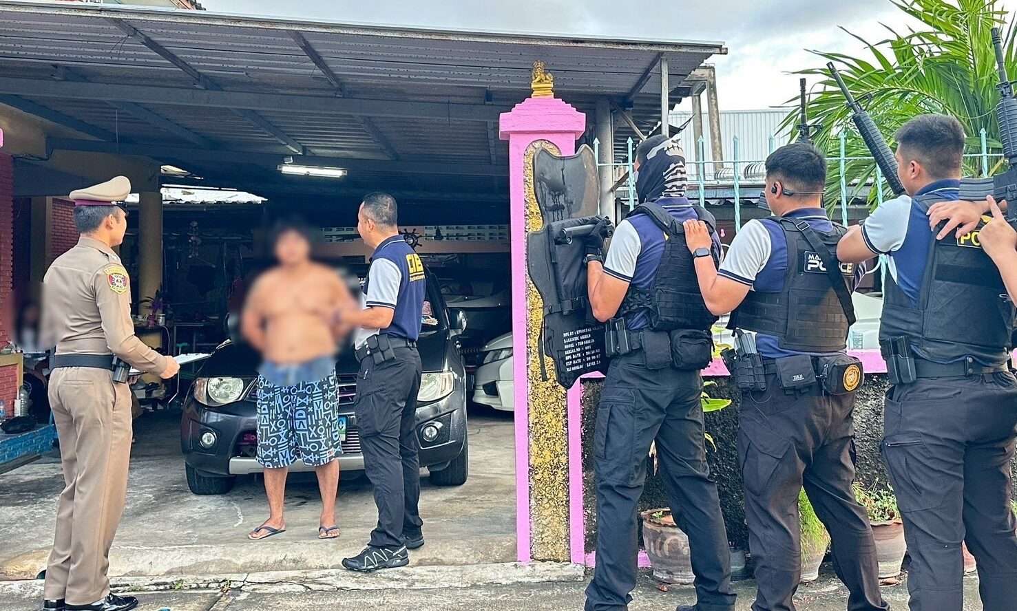 ร่วมกับเจ้าหน้าที่ตำรวจน้ำ ส.รน.2 กก.5 บก.รน. ส.ต.ท.ณัฐกานต์ ทิพจร ผบ.หมู่ ส.รน.2 กก.5 บก.รน., ส.ต.ท.ศรายุทธ แย้มยิ้ม ผบ.หมู่ ส.รน.2 กก.5 บก.รน., ส.ต.ต.ธวัชชัย เพิ่มพูน ผบ.หมู่ ส.รน.2 กก.5 บก.รน.ร่วมกันจับกุม นายเมธีฯ อายุ 42 ปี ตามหมายค้นศาลจังหวัดพัทยา ที่ 181/2568 ลงวันที่ 22 สิงหาคม 2568 ซึ่งต้องหาว่ากระทำความผิดฐาน1. มีอาวุธปืนและเครื่องกระสุนปืนไว้ในครอบครองโดยมิได้รับอนุญาต2. มียาเสพติดให้โทษประเภท 1 (ไอซ์หรือเมทแอมเฟตามีน) ไว้ในครอบครองโดยไม่ได้รับอนุญาต 3. เสพยาเสพติดให้โทษประเภท 1 (ไอซ์หรือเมทแอมเฟตามีน) โดยผิดกฎหมาย สถานที่จับกุม บ้านหลังหนึ่ง หมู่ 5 ตำบลบางละมุง อำเภอบางละมุง จังหวัดชลบุรี