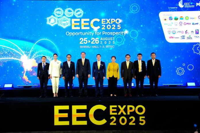 ไบเทค กรุงเทพฯ, วันที่ 25 ส.ค. – นายเอกนัฏ พร้อมพันธุ์ รมว.อุตสาหกรรม เป็นประธานเปิดงาน “EEC EXPO 2025 – Opportunity for Prosperity” เวทีสำคัญของ EEC เปิดประตูการขับเคลื่อนเศรษฐกิจไทยสู่อนาคต ซึ่งจัดโดย สำนักงานส่งเสริมการจัดประชุมและนิทรรศการ (องค์การมหาชน) หรือ ทีเส็บ พร้อมด้วย สำนักงานคณะกรรมการนโยบายเขตพัฒนาพิเศษภาคตะวันออก (สกพอ.) รวมทั้งได้ผนึกกำลังภาคีเครือข่ายทั้งภาครัฐ เอกชน และสถาบันการเงินกว่า 100 หน่วยงาน ร่วมแสดงศักยภาพเชื่อมโยงนักลงทุนไทยและต่างชาติ ผ่านกิจกรรมที่สำคัญภายในงาน เช่น เวทีเสวนาวิชาการ และการจับคู่ธุรกิจ ที่พร้อมเชื่อมโยงนักลงทุน ผู้ซื้อ และผู้ประกอบการจากทั่วประเทศกับภาคธุรกิจในพื้นที่ EEC เพื่อย้ำถึงบทบาทและผลักดันการขับเคลื่อนไทยสู่การเป็น “ศูนย์กลางการลงทุนระดับภูมิภาค” โดยงาน EEC EXPO 2025 ครั้งนี้ จัดขึ้นระหว่างวันที่ 25-26 สิงหาคม 2569 ณ ภิรัช ฮอลล์ 1-3 ศูนย์นิทรรศการและการประชุมไบเทค กรุงเทพมหานคร