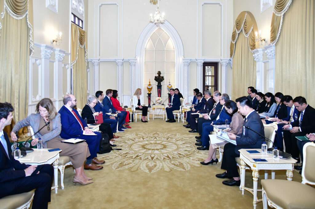 โดยนายภูมิธรรม กล่าวต้อนรับคณะที่มาเยือนไทยในครั้งนี้ พร้อมกล่าวว่ามีส่วนสำคัญในการส่งเสริมความสัมพันธ์ และความร่วมมือระหว่างไทยกับสหรัฐฯ ให้ใกล้ชิดยิ่งขึ้น และหวังว่าคณะ สส.สหรัฐฯ จะได้รับประสบการณ์อันจะเป็นประโยชน์ต่อการดำเนินนโยบายของสหรัฐในภูมิภาคนี้ต่อไป ขอย้ำว่าไทยให้ความสำคัญต่อความเป็นพันธมิตรกับสหรัฐฯ ที่มีมาอย่างยาวนาน และเห็นว่าทั้งสองฝ่ายยังมีศักยภาพที่จะขยายความร่วมมือระหว่างกันได้อีกมาก โดยเฉพาะด้านเศรษฐกิจดิจิทัลและพลังงาน พร้อมกันนี้ยังได้ขอบคุณที่ช่วยดูแลคนไทยในสหรัฐฯ ซึ่งถือเป็นชุมชนไทยที่ใหญ่ที่สุดในต่างประเทศ