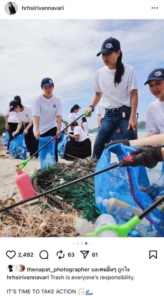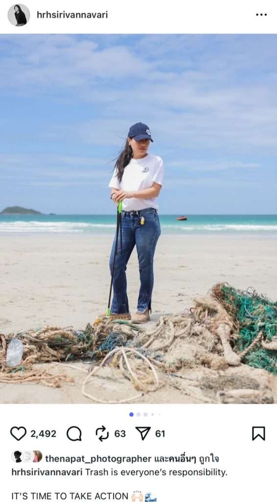 “ยังมีเรื่องนักอนุรักษ์คนหนึ่งที่สังเกตว่าตั้งแต่ปีที่แล้วจนถึงปีนี้โลกของเรามีความปั่นป่วนในแง่ของทรัพยากรเยอะมาก ไม่ว่าจะเป็นอากาศที่มีความสับสนวุ่นวายมากขึ้น น้ำทะเลที่ยุโรปอุ่นขึ้นอย่างไม่น่าเชื่อ รวมถึงประเทศเราด้วย ซึ่งมีผลกระทบต่อการเปลี่ยนแปลงสภาพภูมิอากาศ ( Climate change ) อีกเรื่องหนึ่งนอกจากการเปลี่ยนแปลงสภาพภูมิอากาศแล้ว เรื่องของการท่องเที่ยวที่มีความทะลักทะลวงจนลืมไปว่าบางครั้งเราต้องคำนึงถึงการพิทักษ์ดูแลเรือของนักท่องเที่ยวด้วย การทิ้งขยะอะไรต่าง ๆ แม้กระทั่งทรัพยากรการท่องเที่ยวในบางจุดที่อาจมีความแออัด ใต้ท้องทะเลหลาย ๆ ส่วน ที่เห็นมาสิ่งที่น่ากังวลใจ คือเรื่องของสัตว์ทะเลเกยตื้นมากขึ้น เกิดขึ้นทั่วโลก ท่านหญิงไม่อยากเห็นแบบนี้ในเมืองไทย เพราะทำให้รู้สึกแย่” พระดำรัส สมเด็จพระเจ้าลูกเธอ เจ้าฟ้าสิริวัณณวรี ฯ