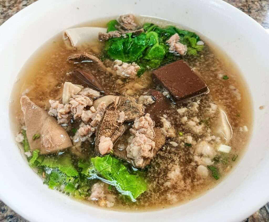 เมนูแรก ลุงสั่งต้มเลือดหมูทุกอย่าง ชามนี้นี้ราคา 60 บาท ความอร่อยยังอยู่คงกระพันเหมือนเดิม เลือดหมูนุ่ม หมูสับดี เครื่องในเด็ด น้ำซุปสดคล่องคอ