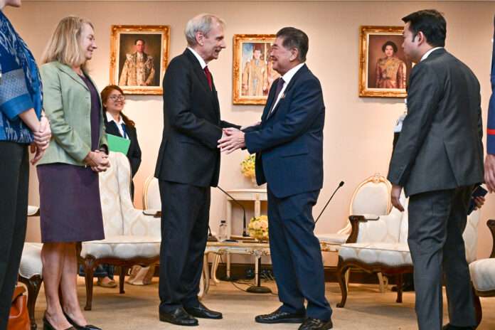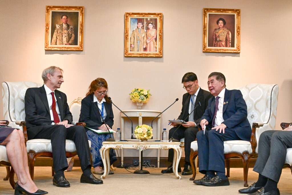 ที่ทำเนียบรัฐบาล, วันที่ 26 สิงหาคม – นายรอเบิร์ต เอฟ. โกเด็ก (The Honorable Robert F. Godec) เอกอัครราชทูตสหรัฐอเมริกาประจำประเทศไทย เข้าเยี่ยมคารวะ และหารือข้อราชการกับนายภูมิธรรม เวชยชัย รองนายกรัฐมนตรี และรมว.มหาดไทย ในฐานะรักษาราชการแทนนายกรัฐมนตรี (รรท.นายกฯ) โดยนายภูมิธรรมยืนยันไทยว่าพร้อมสานต่อการทำงานกับสหรัฐ เพื่อสร้างความเป็นหุ้นส่วนทางเศรษฐกิจที่สมดุลมากขึ้น โดยได้ขอบคุณ และฝากความปรารถนาดีไปยังประธานาธิบดีโดนัลด์ ทรัมป์ และหวังว่าจะได้มีโอกาสต้อนรับ ปธน.ทรัมป์ในเร็ว ๆ นี้ ซึ่งจะเป็นการเยือนไทยครั้งแรกของผู้นำสหรัฐในรอบ 13 ปี พร้อมขอบคุณสหรัฐที่เข้ามามีส่วนร่วมเป็นผู้สังเกตการณ์ชั่วคราวต่อสถานการณ์ชายแดนไทย–กัมพูชา ถือเป็นพัฒนาการที่ดีและเป็นสัญญาณเชิงบวกต่อการสร้างเสถียรภาพในภูมิภาคร่วมกัน