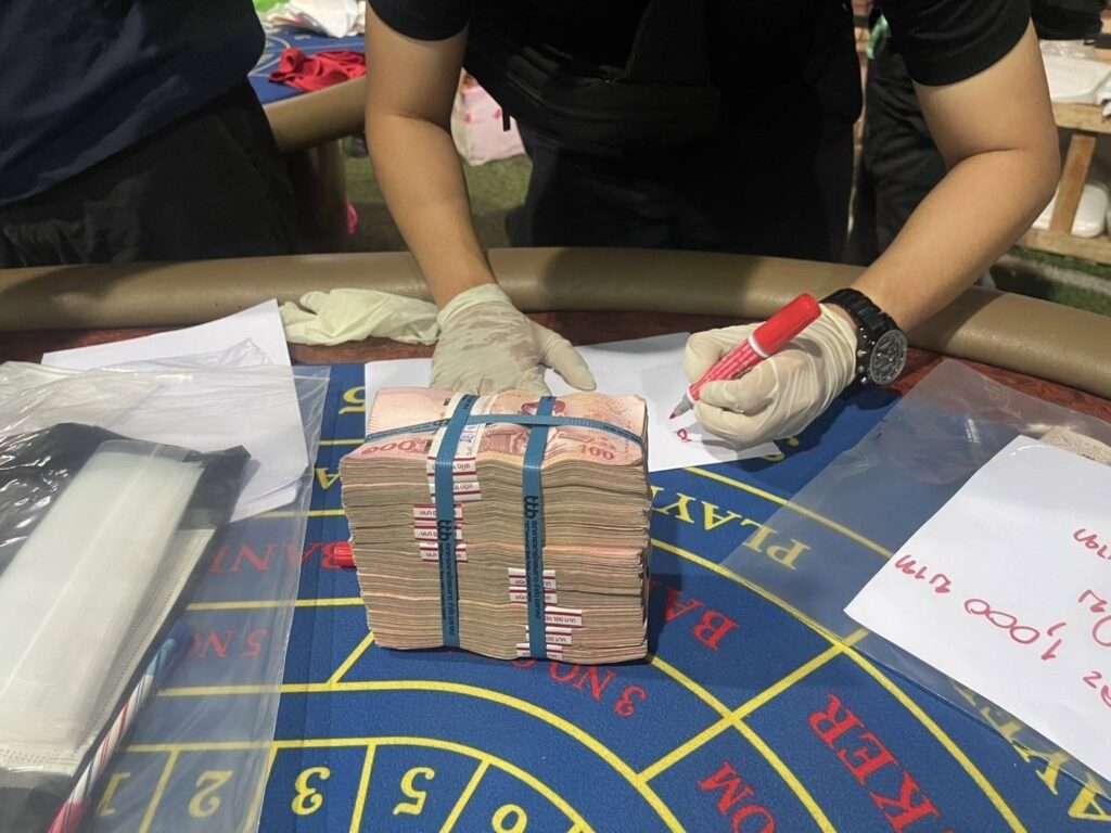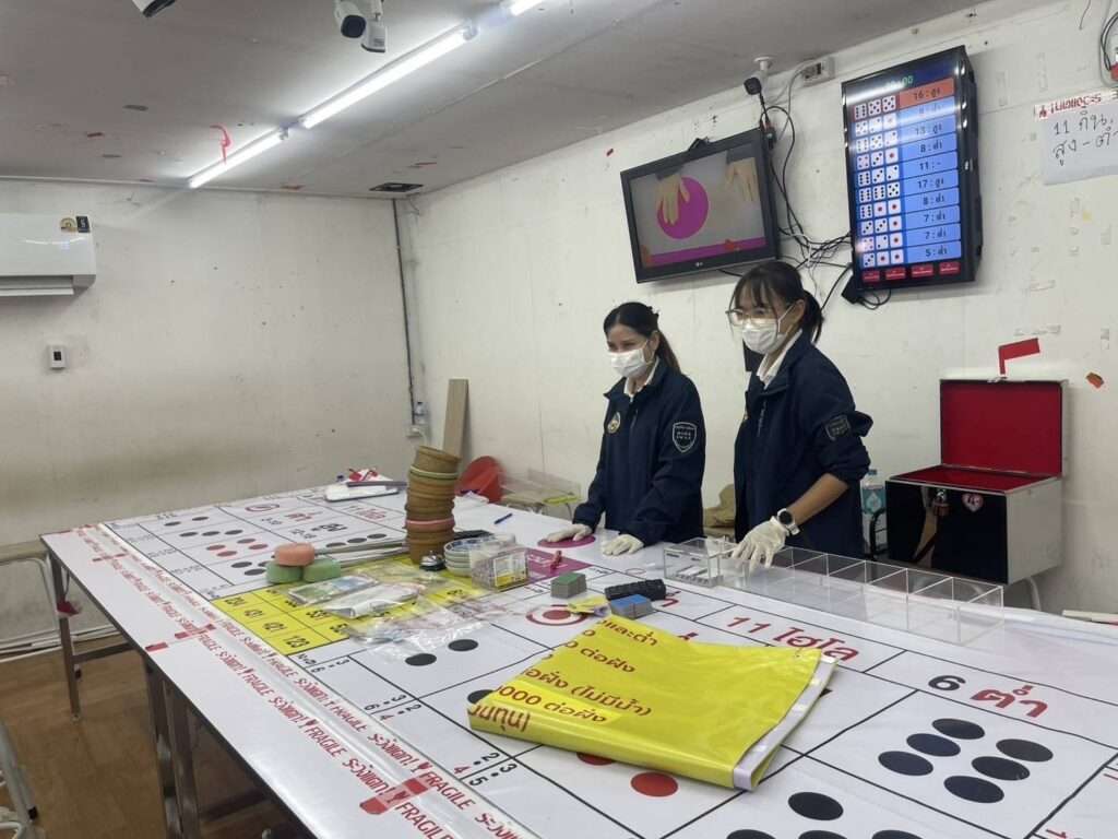 ที่เกิดเหตุอยู่ในพื้นที่สนามฟุตซอลเก่า “เกียรติ ดอนเมือง” เจ้าหน้าที่ชุดกองร้อยปฏิบัติการพิเศษที่ 1 กรมการปกครอง ทำการปิดล้อมทางเข้าออกโดยรอบ พบมีประตูเหล็กขนาดใหญ่ปิดกั้นอยู่ จึงใช้อุปกรณ์ตัดเหล็กเข้าตัดประตูเป็นช่องเพื่อให้เจ้าหน้าที่บุกเข้าไปด้านใน จากการตรวจสอบพบว่าใช้พื้นที่ของสนามฟุตบอลหญ้าเทียม และพื้นที่อาคารที่อยู่ใกล้เคียง เป็นห้องพนันแบบครบวงจร รวม 5 ห้อง และห้อง VIP 1 ห้อง โดยมีการเล่นพนันกำถั่ว, ไฮโล และ เสือมังกร โดยสามารถจับกุมนักพนันได้รวม 176 คน แบ่งเป็นชาย 62 คน หญิง 114 คน พร้อมยึดของกลางเงินสด ประมาณ 1 ล้านกว่าบาท ทั้งธนบัตรและเหรียญ สมุดบัญชีธนาคาร รวม 17 เล่ม เป็นของหญิงรายหนึ่งชื่อเดียวกันทั้งหมด มีเงินโอนบัญชีตั้งแต่หลักแสนไปจนถึงหลักสิบล้าน และพบสลิปเงินฝากในวันเดียวรวมแล้ว เกือบ 4 ล้านบาท รวมถึงอุปกรณ์โต๊ะเล่นพนัน และอุปกรณ์การเล่นจำนวนมาก นอกจากนี้ ภายในยังมีการตั้งร้านอาหาร และน้ำดื่มเหมือนเป็นตลาดนัดย่อม ๆ บริการให้กับผู้เล่นพนันดังกล่าว