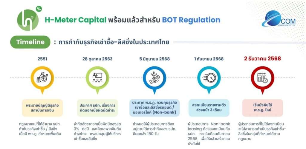 กรุงเทพฯ – 28 สิงหาคม – บริษัท ซีเนียร์ คอม จำกัด ผู้นำด้านการพัฒนาซอฟต์แวร์และที่ปรึกษาด้านระบบสินเชื่อเช่าซื้อและบริหารจัดการดีลเลอร์ยานยนต์มายาวนานกว่า 33 ปี ประกาศเปิดตัวแพลตฟอร์มสินเชื่อดิจิทัลครบวงจร “H-Meter Capital Experience Version BOT Comply” อย่างเป็นทางการ ชูจุดเด่นเป็นเครื่องมือสำคัญช่วยให้สถาบันการเงินและผู้ประกอบการ สามารถปรับตัวและปฏิบัติตามกฎเกณฑ์ใหม่ของพระราชบัญญัติการกำกับดูแลธุรกิจเช่าซื้อที่มีผลบังคับใช้ในวันที่ 2 ธันวาคม พ.ศ. 2568 ได้อย่างรวดเร็ว และมีประสิทธิภาพ ในฐานะบริษัทซอฟต์แวร์ไทยหวังใช้เทคโนโลยียกระดับมาตรฐานและความโปร่งใสของธุรกิจสินเชื่อเช่าซื้อ สร้างความเป็นธรรมแก่ผู้บริโภค และช่วยลดภาระหนี้ครัวเรือนในภาพรวมได้