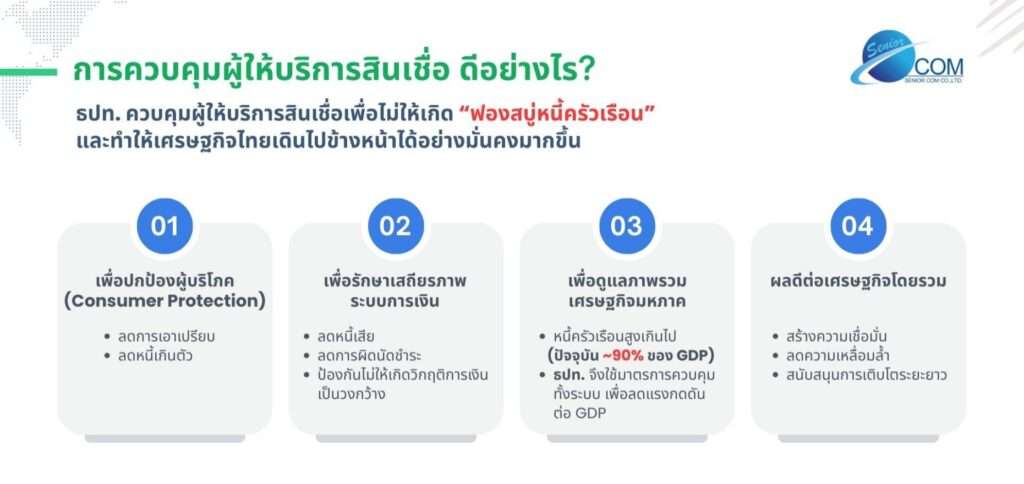 นางสาวสุพนิต อึ่งอารี ประธานเจ้าหน้าที่ฝ่ายปฏิบัติการ (COO) บริษัท ซีเนียร์ คอม จำกัด กล่าวถึงวิกฤติหนี้ครัวเรือนไทยว่า ปัจจุบันหนี้ครัวเรือนไทยอยู่ในระดับ 87.4% ของ GDP ซึ่งถือเป็นหนึ่งในความเสี่ยงสำคัญต่อเสถียรภาพทางการเงินของประเทศ โดยเฉพาะธุรกิจเช่าซื้อ-ลีสซิ่ง ที่มีสัดส่วนของหนี้ครัวเรือนกว่า 10% หรือมูลค่าถึง 1.6 ล้านล้านบาท