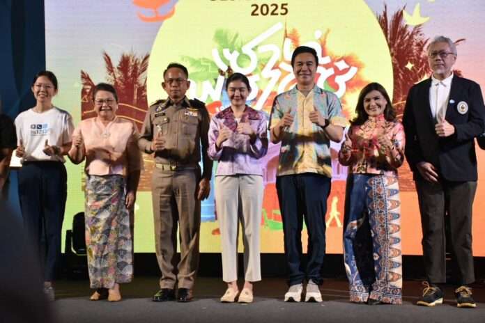 สงขลา, วันที่ 28 สิงหาคม – นางสาวจิราพร สินธุไพร รัฐมนตรีประจำสำนักนายกรัฐมนตรี (รมต.นร.) เป็นประธานในพิธีเปิดเทศกาลงานออกแบบปักษ์ใต้ 2568 (Pakk Taii Design Week 2025) ซึ่งเป็นความร่วมมือของสำนักงานส่งเสริมเศรษฐกิจสร้างสรรค์ (องค์การมหาชน) หรือ CEA ร่วมกับจังหวัดสงขลา จังหวัดในภาคใต้ และเครือข่ายพันธมิตร จัดขึ้นระหว่างวันที่ 28 สิงหาคม – 7 กันยายน 2568 ณ ลาน Creative Market (ลานจอดรถเทศบาลฯ) ตำบลบ่อยาง อำเภอเมืองสงขลา โดยมี ผวจ.สงขลา นายกเทศมนตรีนครสงขลา ผู้อำนวยการสำนักงานส่งเสริมเศรษฐกิจสร้างสรรค์ คณะกรรมการ คณะที่ปรึกษา ตลอดจนผู้บริหารจากหน่วยงานภาครัฐและเอกชน ภาคีเครือข่ายจาก 14 จังหวัดภาคใต้ ร่วมเป็นเกียรติในพิธีเปิด