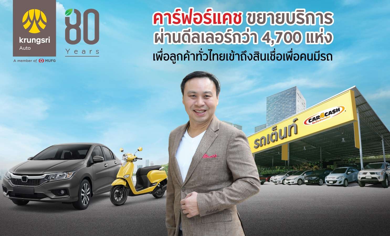 นายพรเทพ ถิรสุนทรากุล ผู้ช่วยกรรมการผู้จัดการใหญ่ ผู้บริหารสายงานการตลาด ธุรกิจสินเชื่อยานยนต์ ธนาคารกรุงศรีอยุธยา จำกัด (มหาชน) กล่าวว่า “ตลอด 22 ปีที่ผ่านมา ในฐานะแบรนด์ผู้บุกเบิกตลาดรีไฟแนนซ์รถในประเทศไทย ‘คาร์ฟอร์แคช’ เชื่อว่าเจ้าของรถทุกคนควรมีโอกาสเข้าถึงแหล่งเงินทุนที่ปลอดภัย และเชื่อถือได้ ไม่ว่าจะอยู่ในพื้นที่ใดก็ตาม ด้วยเหตุนี้ เราจึงมุ่งพัฒนาบริการสินเชื่อจำนำทะเบียนรถให้รวดเร็ว คล่องตัว และครอบคลุมทุกกลุ่มลูกค้า เพื่อขยายโอกาสการเข้าถึงแหล่งเงินทุนให้ครอบคลุมยิ่งขึ้น เราจึงร่วมมือกับพันธมิตรดีลเลอร์ทั่วประเทศในเครือข่ายของกรุงศรี ออโต้ โดยยกระดับบทบาทของดีลเลอร์รถยนต์และมอเตอร์ไซค์ทั้งใหม่และมือสองให้มีส่วนร่วมในการเชื่อมต่อกับทีมงานของกรุงศรี ออโต้ เพื่อดำเนินการขอสินเชื่อได้อย่างไร้รอยต่อและครอบคลุมพื้นที่ทั่วไทย”