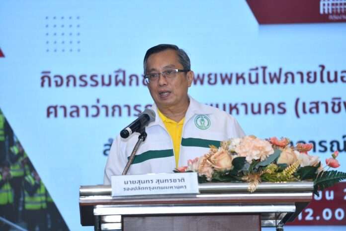 (1 ก.ย. 68) เวลา 09.00 น. นายแพทย์สุนทร สุนทรชาติ รองปลัดกรุงเทพมหานคร เป็นประธานเปิดกิจกรรมฝึกซ้อมอพยพหนีไฟภายในอาคารศาลาว่าการกทม. (เสาชิงช้า) สำหรับผู้บัญชาการเหตุการณ์ โดยกล่าวว่า การฝึกซ้อมอพยพหนีไฟภายในอาคารศาลาว่าการกทม. เป็นส่วนสำคัญที่ผู้แทนของหน่วยงานทุกคน จะได้นำความรู้ วิธีการปฏิบัติไปเผยแพรให้ผู้ปฏิบัติงานในสังกัดได้รับทราบ และเป็นแนวทางปฏิบัติได้เป็นอย่างดี เนื่องจากข้าราชการและบุคลากรทุกคนที่ปฏิบัติงานภายในอาคารศาลาว่าการกทม. จะเป็นส่วนสำคัญในการช่วยกันดูแลอาคารศาลาว่าการกทม. ให้มีความปลอดภัยทั้งชีวิตและทรัพย์สินของทางราชการ เหตุอัคคีภัยนั้น เป็นเหตุที่สามารถป้องกันได้และไม่ควรเกิดขึ้นในอาคารศาลาว่าการกทม. หรือหากเป็นเหตุสุดวิสัยก็ต้องดำเนินการระงับด้วยความรวดเร็ว ลดความสูญเสียให้เหลือน้อยที่สุด จึงขอให้ทุกคนนำความรู้ที่ได้รับในวันนี้ไปใช้ปฏิบัติอย่างจริงจัง เพื่อให้เกิดประโยชน์ต่อหน่วยงานและกรุงเทพมหานครต่อไป