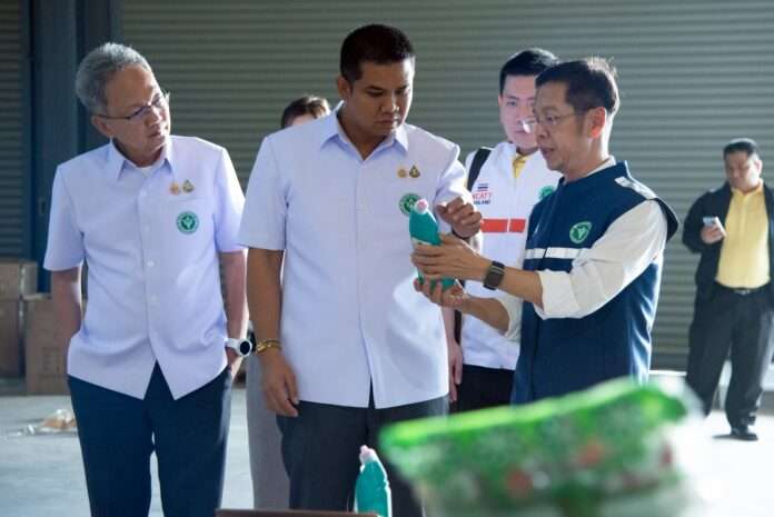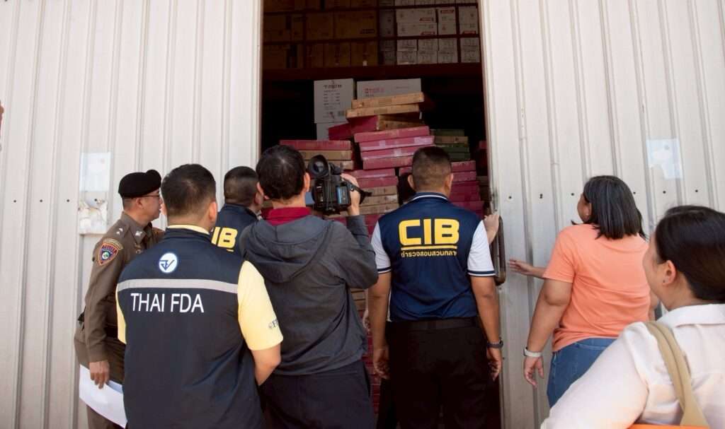 นายชัยชนะ เดชเดโช รัฐมนตรีช่วยว่าการกระทรวงสาธารณสุข เปิดเผยว่า จากนโยบายรัฐบาลและรัฐมนตรีว่าการกระทรวงสาธารณสุข (นายสมศักดิ์ เทพสุทิน) ที่มุ่งเน้นการปราบปรามขบวนการธุรกิจจีนเทาซึ่งสร้างผลกระทบต่อความปลอดภัยของประชาชน โดยสืบเนื่องจากมีผู้ร้องเรียนเรื่องการจำหน่ายผลิตภัณฑ์สุขภาพนำเข้าจากจีนผ่านแพลตฟอร์มออนไลน์ เมื่อตรวจสอบเส้นทางการจัดส่งจึงพบว่าต้นทางมาจากโกดังย่านแสมดำ เขตบางขุนเทียน ในวันนี้ (1 กันยายน 2568) จึงได้สนธิกำลังกับตำรวจ บก.ปคบ. เข้าตรวจค้นโกดัง 2 จุด และพบผลิตภัณฑ์ที่เข้าข่ายผิดกฎหมายจำนวนมาก ทั้งวัตถุอันตรายที่ใช้ในบ้านเรือน (ยาจุดกันยุง น้ำยาฆ่าเชื้อ) เครื่องสำอาง (ยาย้อมผม, ผ้าอนามัย, ลิปสติก) และอาหาร (พุดดิ้ง, น้ำผลไม้) รวมมูลค่ากว่า 10 ล้านบาท ซึ่งไม่มีเลขทะเบียนหรือเลขจดแจ้ง และไม่มีฉลากภาษาไทย จึงได้ตรวจยึดของกลางทั้งหมดส่งให้พนักงานสอบสวน บก.ปคบ. ดำเนินคดีตามกฎหมายต่อไป